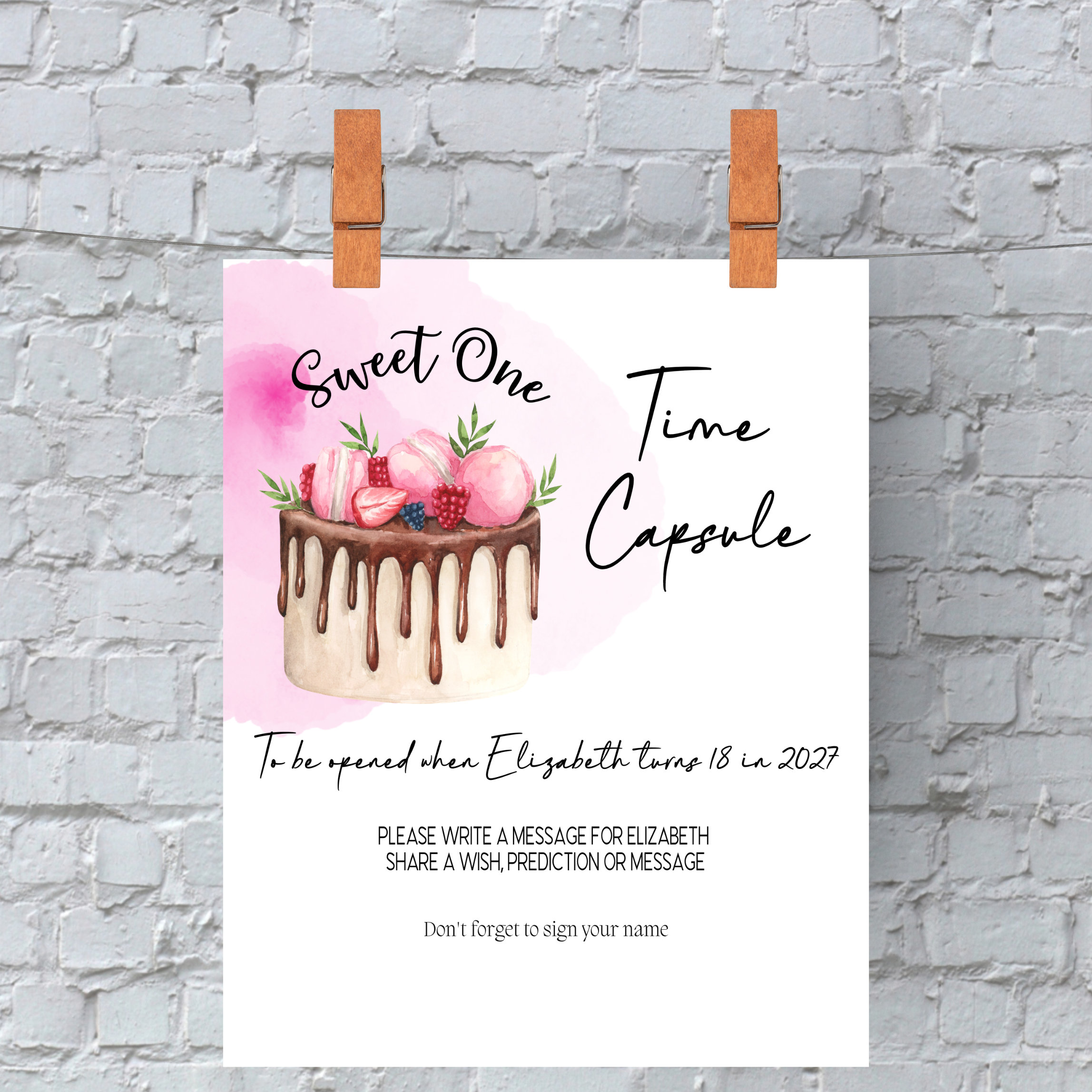 Sweet One Birthday Time Capsule Sign, Pink Cake 1st Birthday Party Signs, Cake Bday Banner, She’s a Sweet One, Print and Digital #SBC