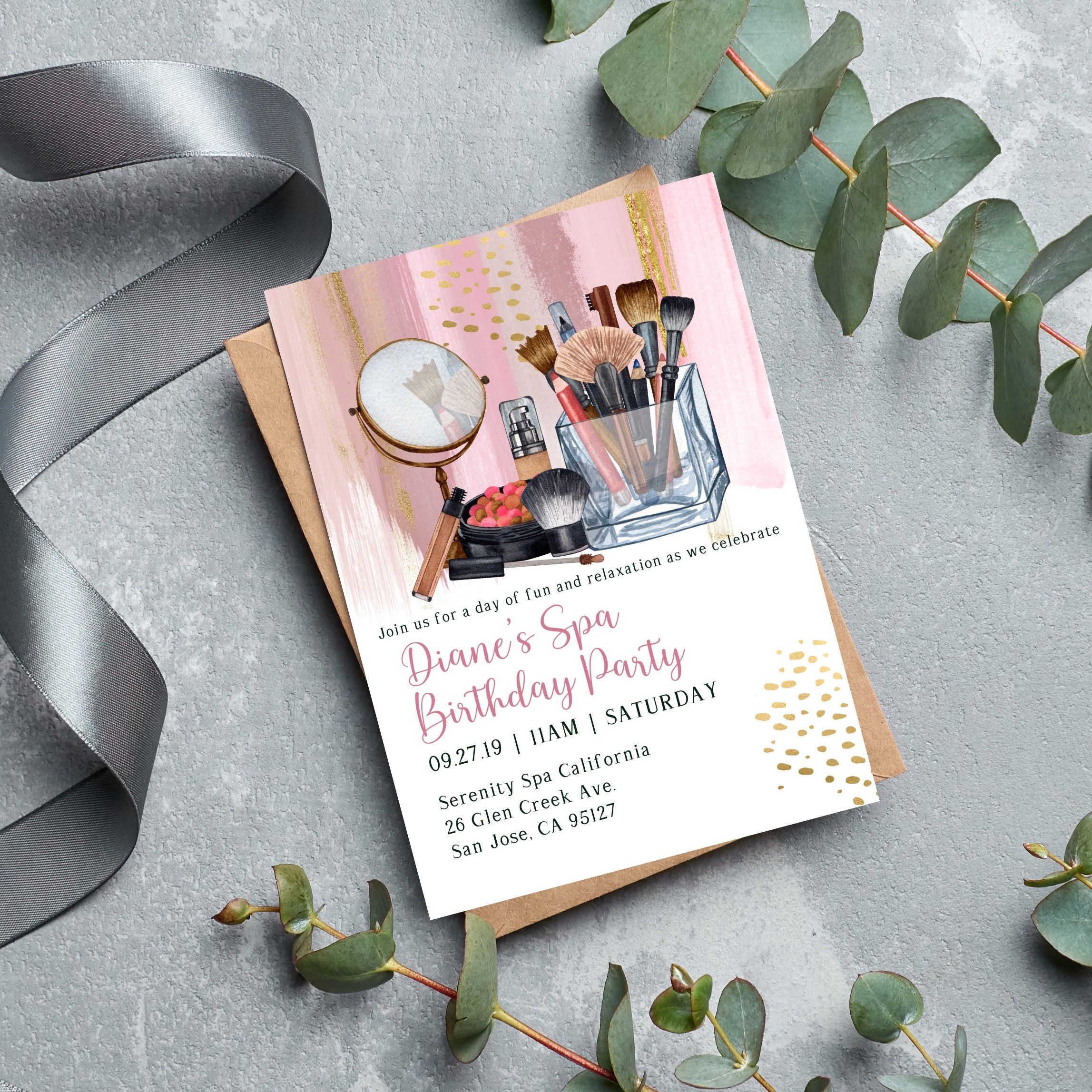 Spa Party Birthday Invitation, Girly Slumber Party, Sleep Over Makeup Bday, Glam Girls Night Out Printable Template, #SBP1