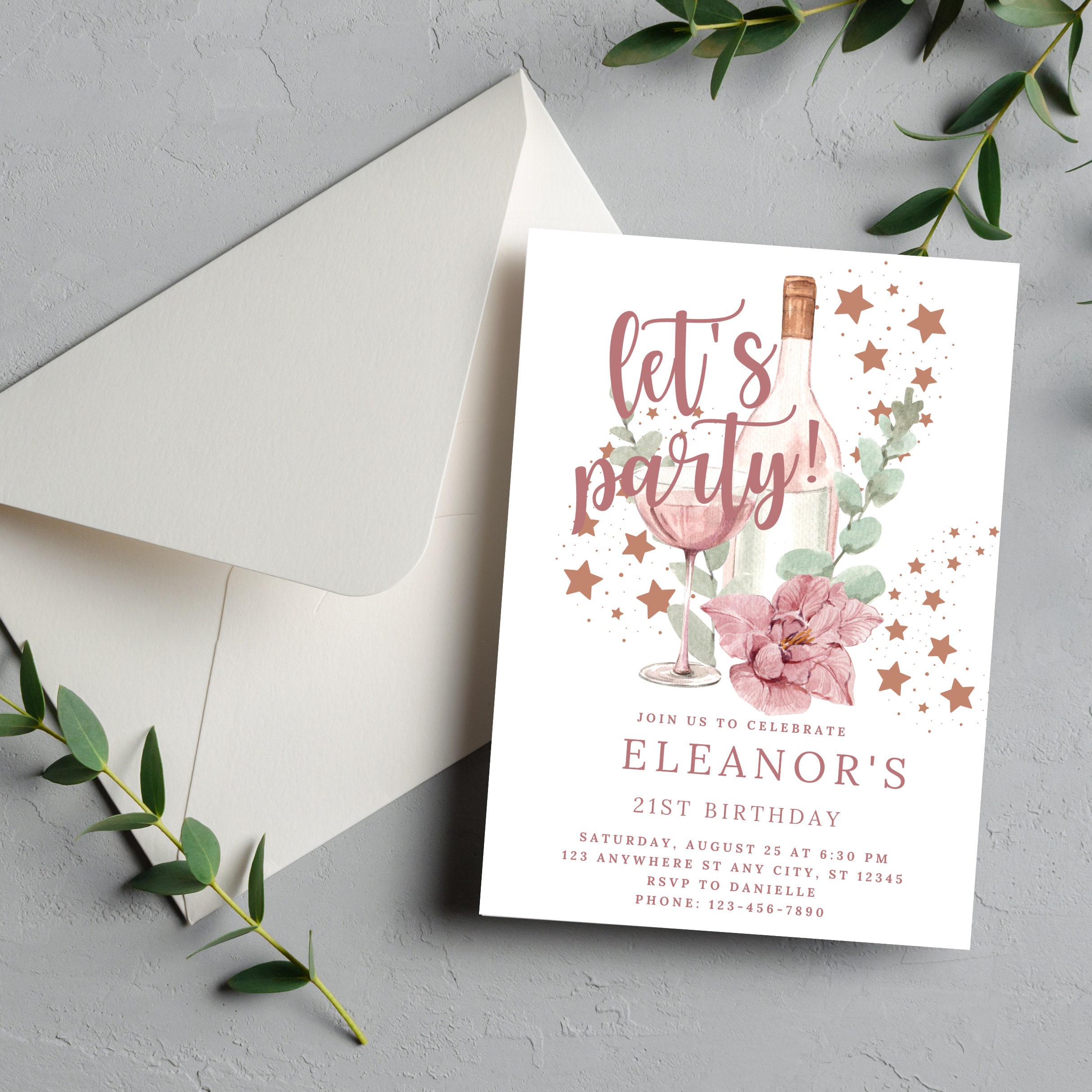 Ladies Champagne 21st Birthday Invitation, Cocktail Party Invitations, Printable Template Invites, Digital Download, #CBP