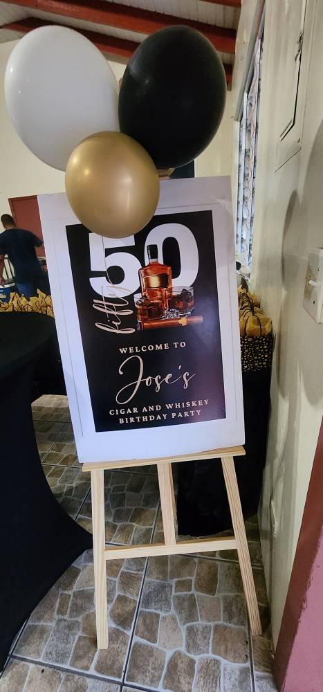 Add a touch of class and personalization to your event with this unique Editable Whiskey & Cigar Birthday Welcome Sign. Your guests will love the thoughtful decor!
