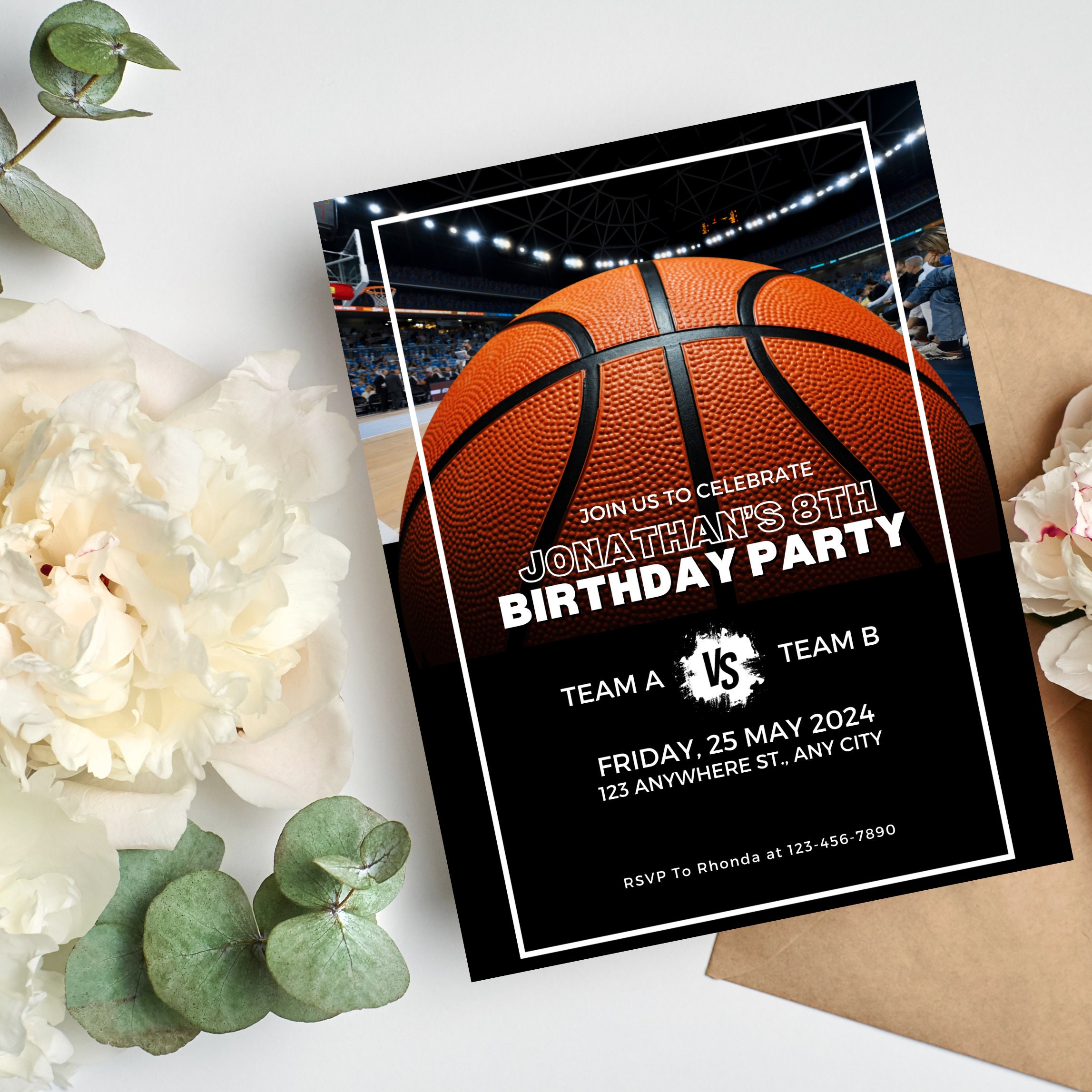 Customizable Basketball Birthday Invitation Template, Editable Digital Templates for Sports Enthusiasts - Instant Download