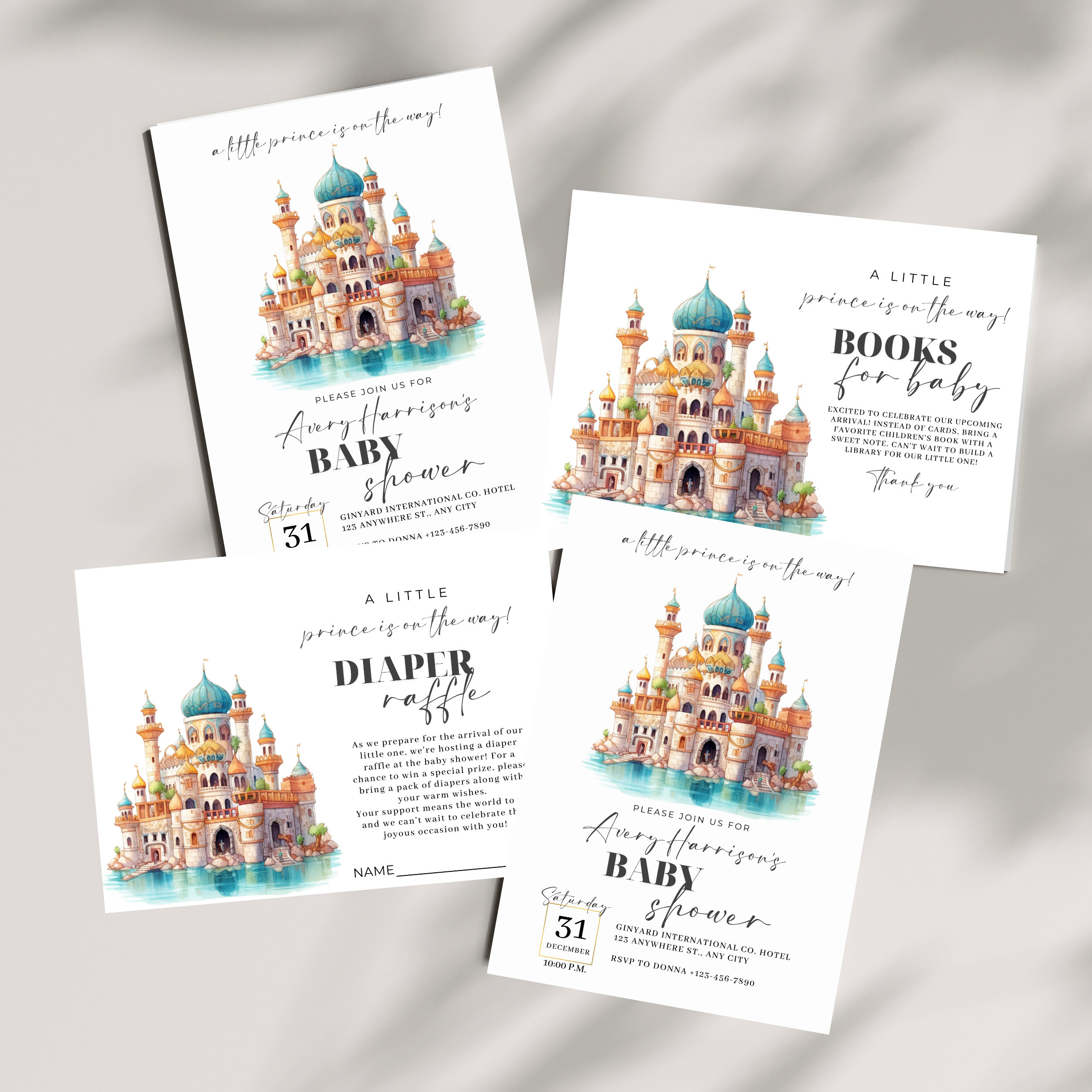 Blue Castle Baby Shower Invitation Suite | A Little Prince on the Way | Fairytale Theme, Custom Royal Books For Baby, Diaper Raffle