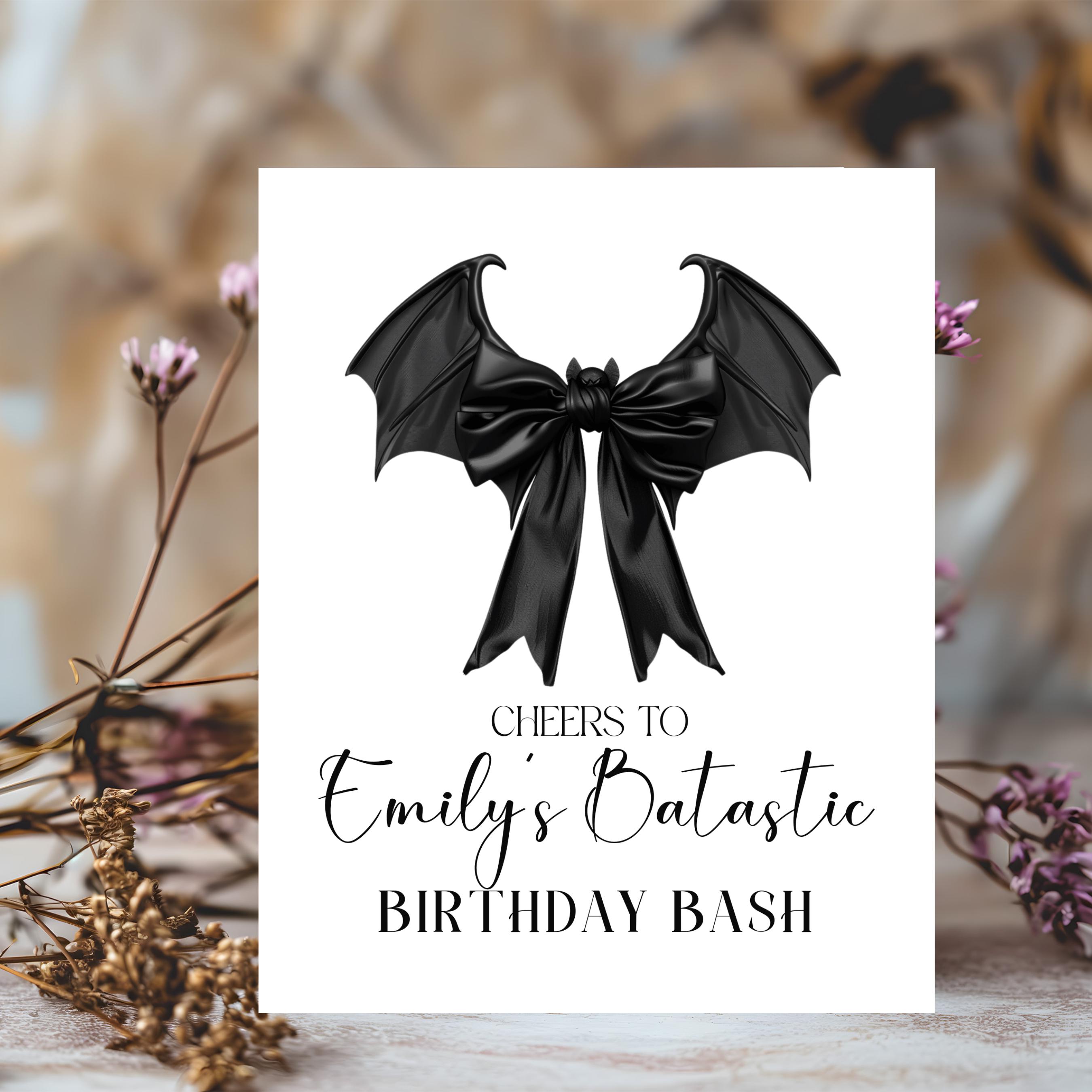 Cheers to a Bat-tastic Birthday Bash! | Editable Personalized Birthday Welcome Sign | Custom Black Bat Bow Party Decor