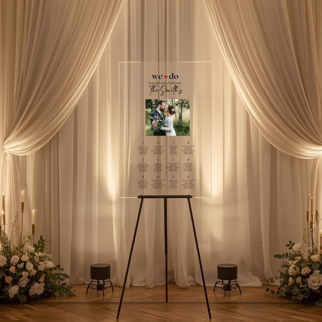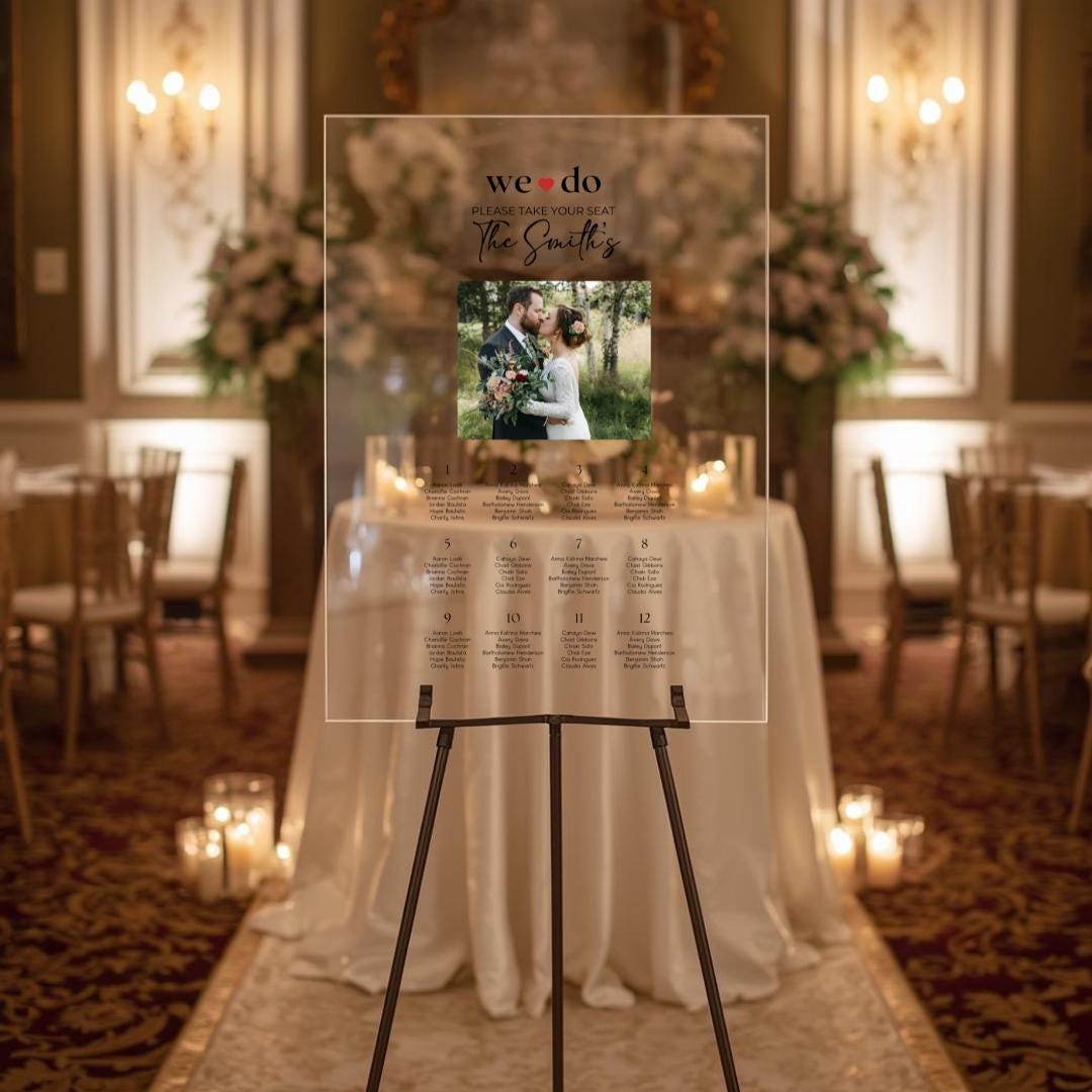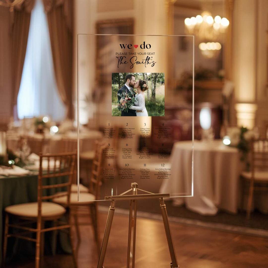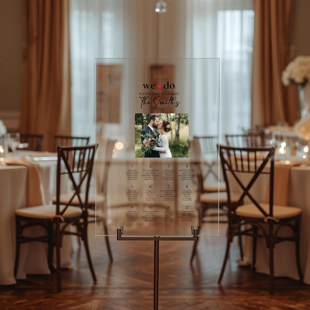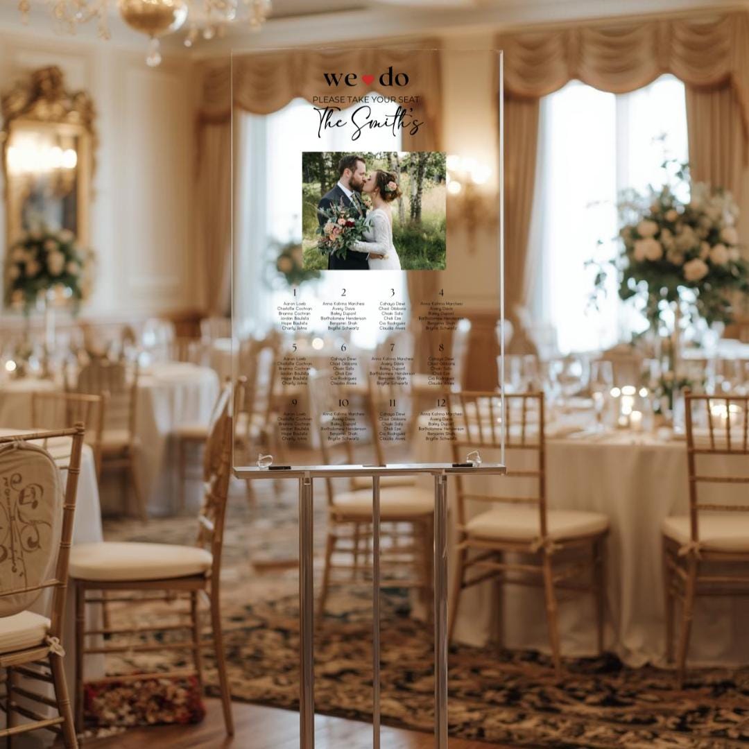 Make a stunning statement at your wedding with our Custom Acrylic Wedding Seating Photo Chart – the perfect blend of modern elegance and personalization! Display your favorite photo alongside your guest seating arrangement for a memorable and sophisticated touch your guests will love.