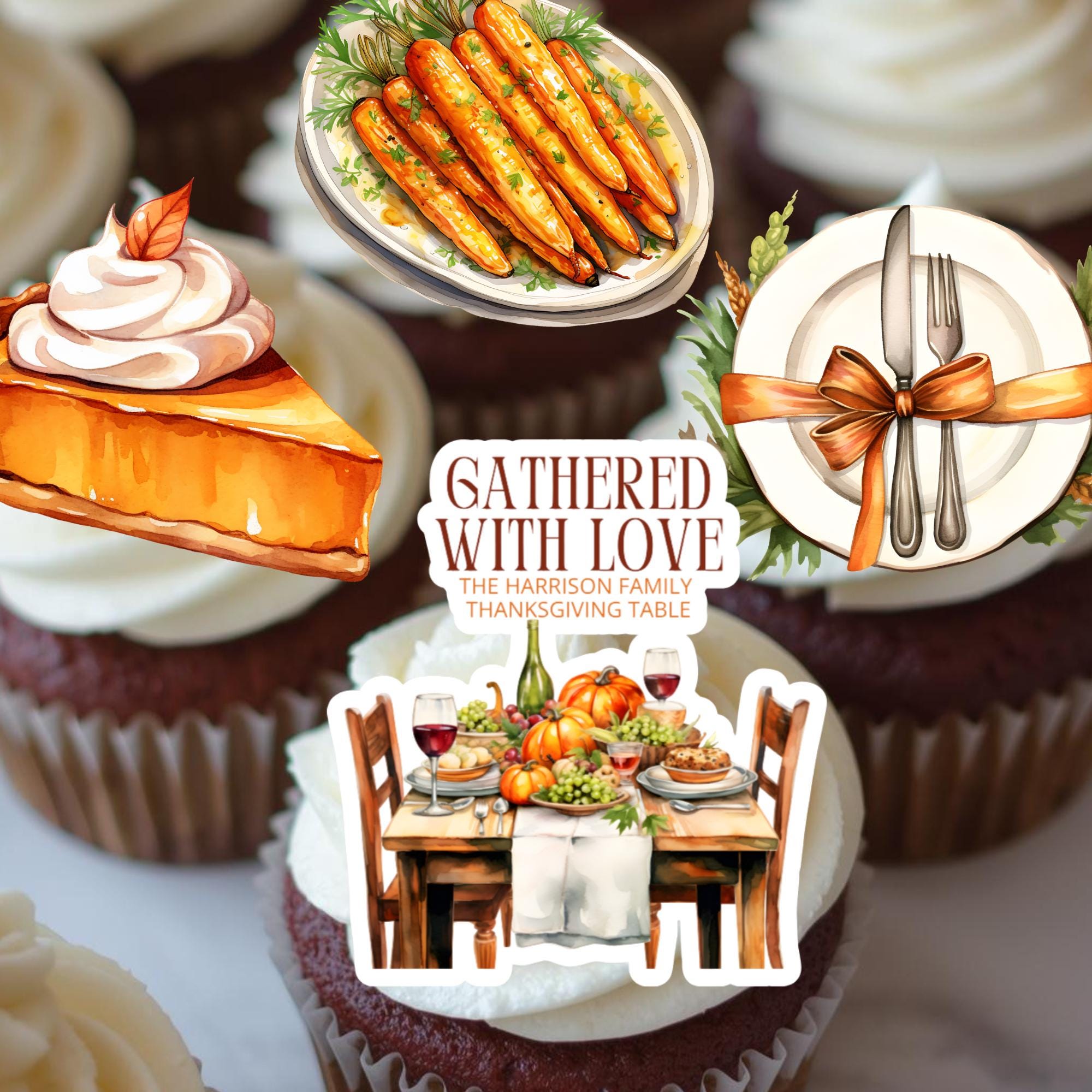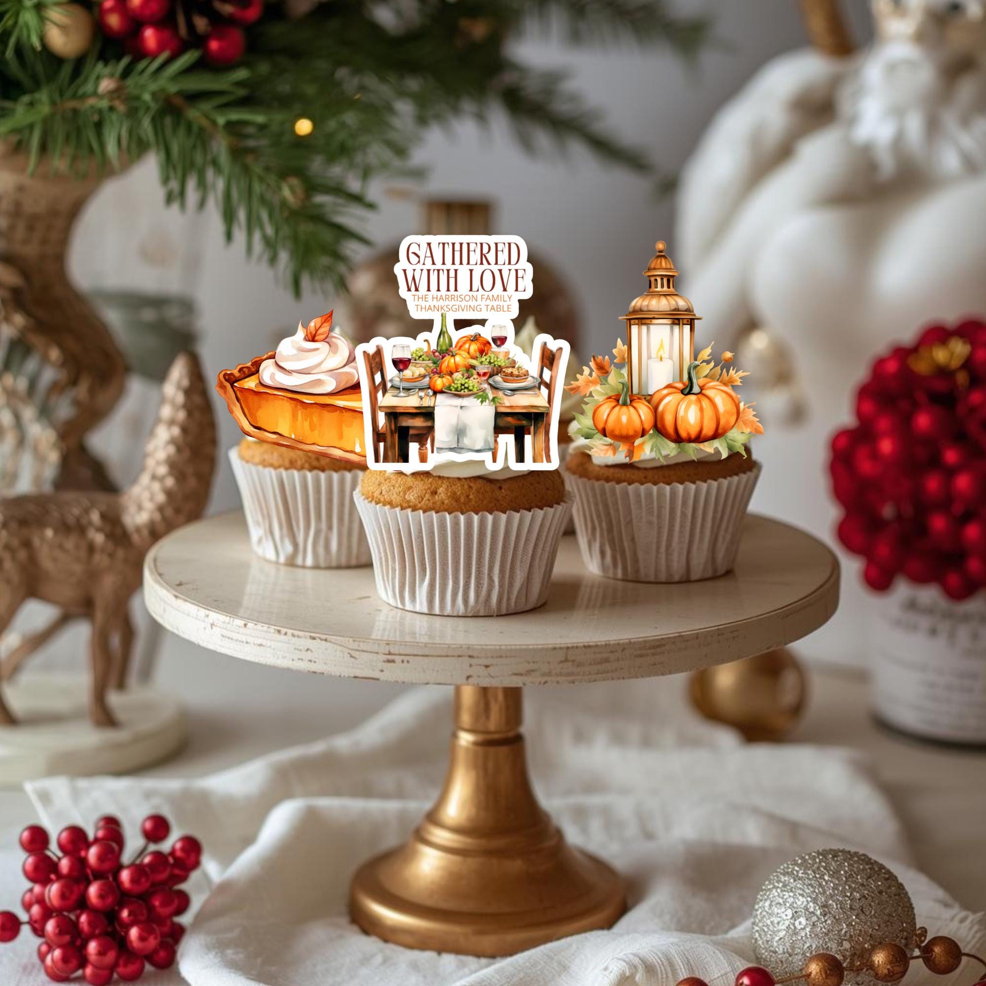 Thanksgiving Cupcake Toppers Personalized with Family Name | Fall Harvest Dessert Decorations | Custom Thanksgiving Table Decor | Autumn Party Cupcake