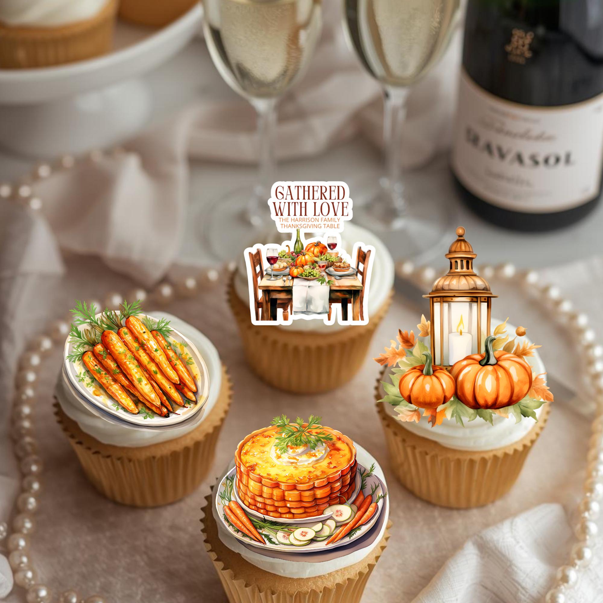 Add a festive touch to your Thanksgiving desserts with our Custom Thanksgiving Cupcake Toppers — perfect for family gatherings, Friendsgiving parties, and fall celebrations!