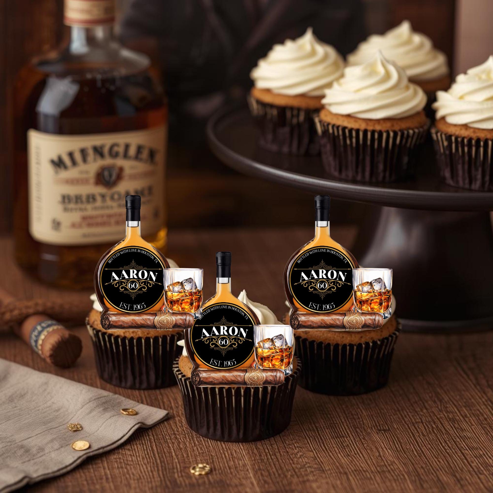 Celebrate in style with our Whiskey & Cigar Toppers — a perfect accent for birthdays, whiskey lovers, and cigar-themed celebrations!