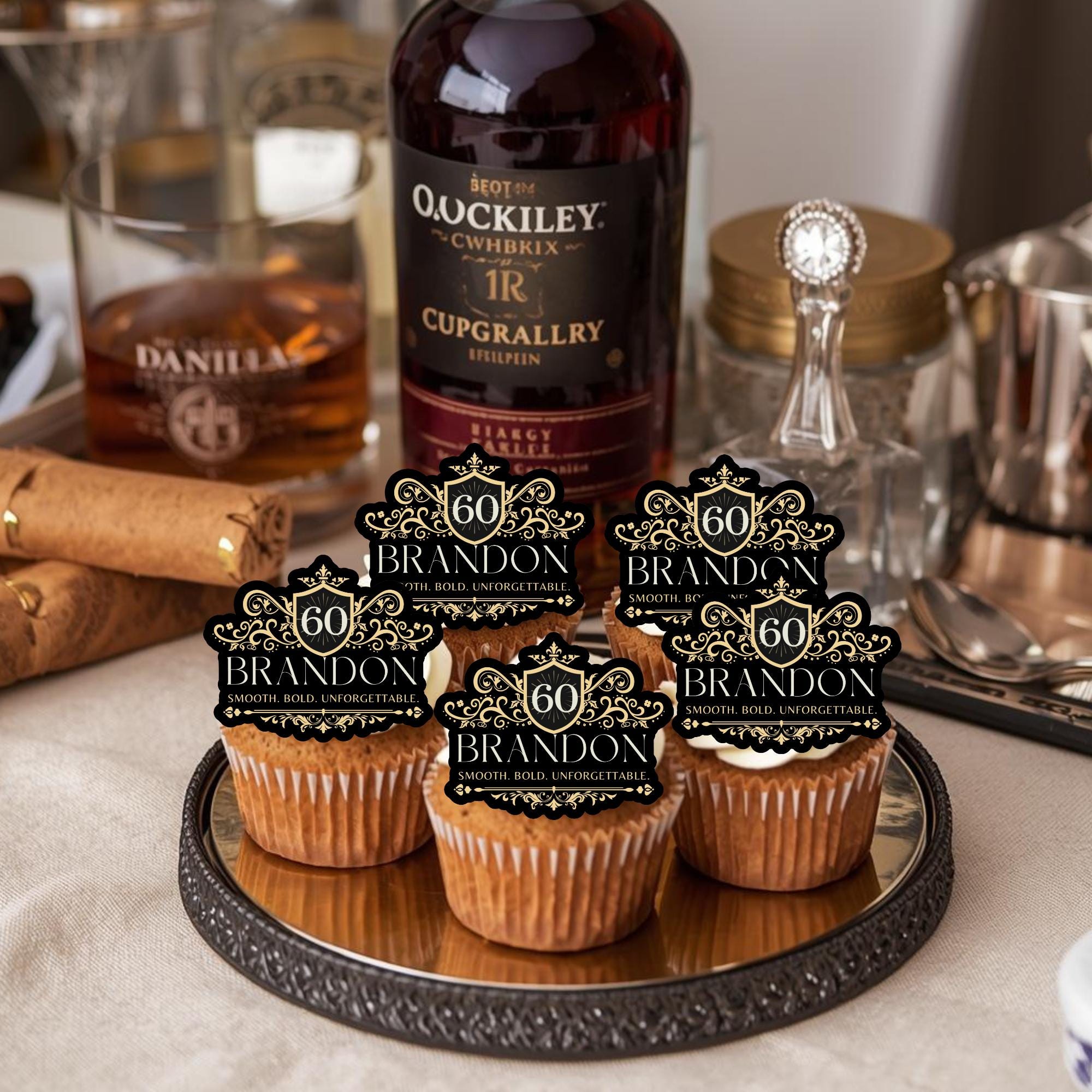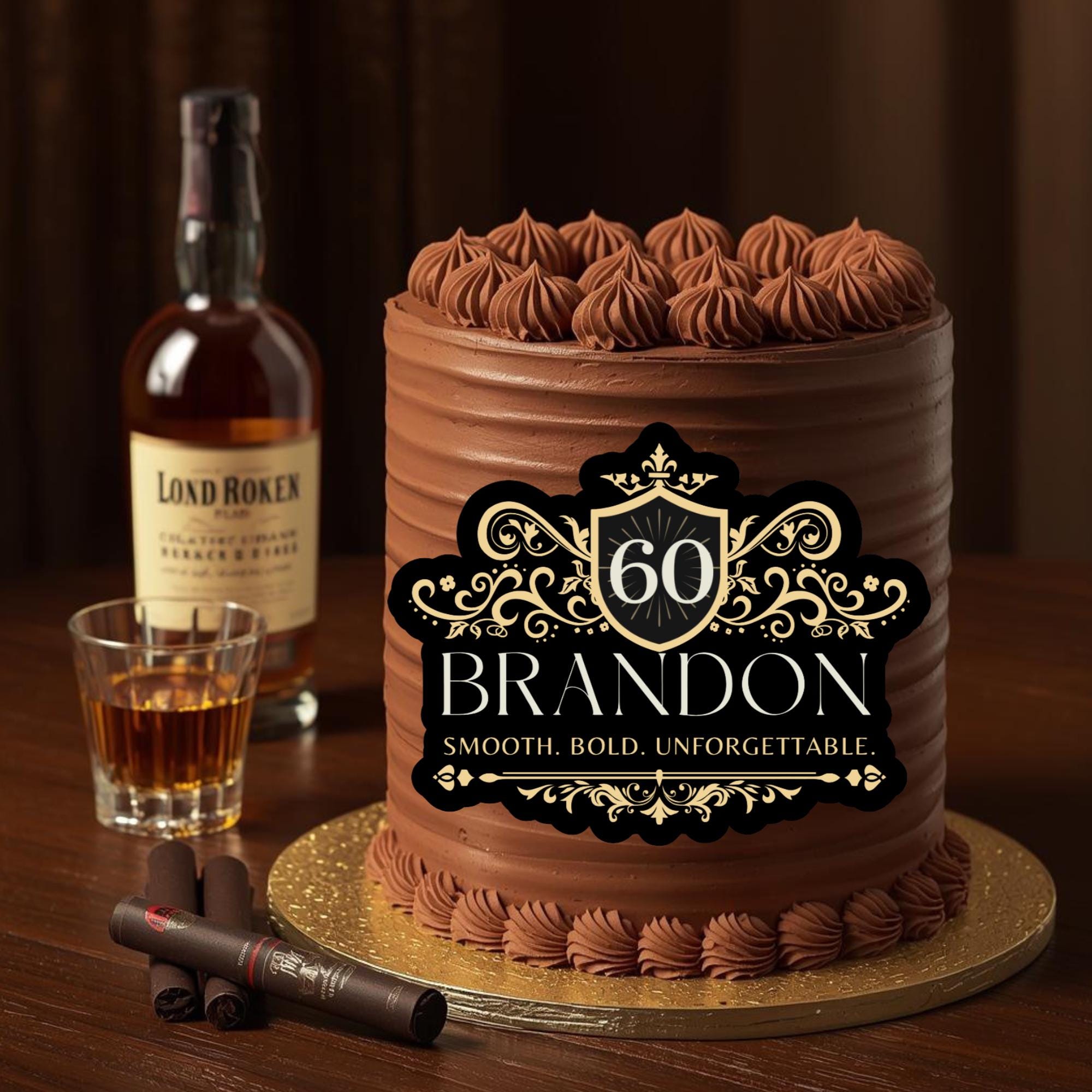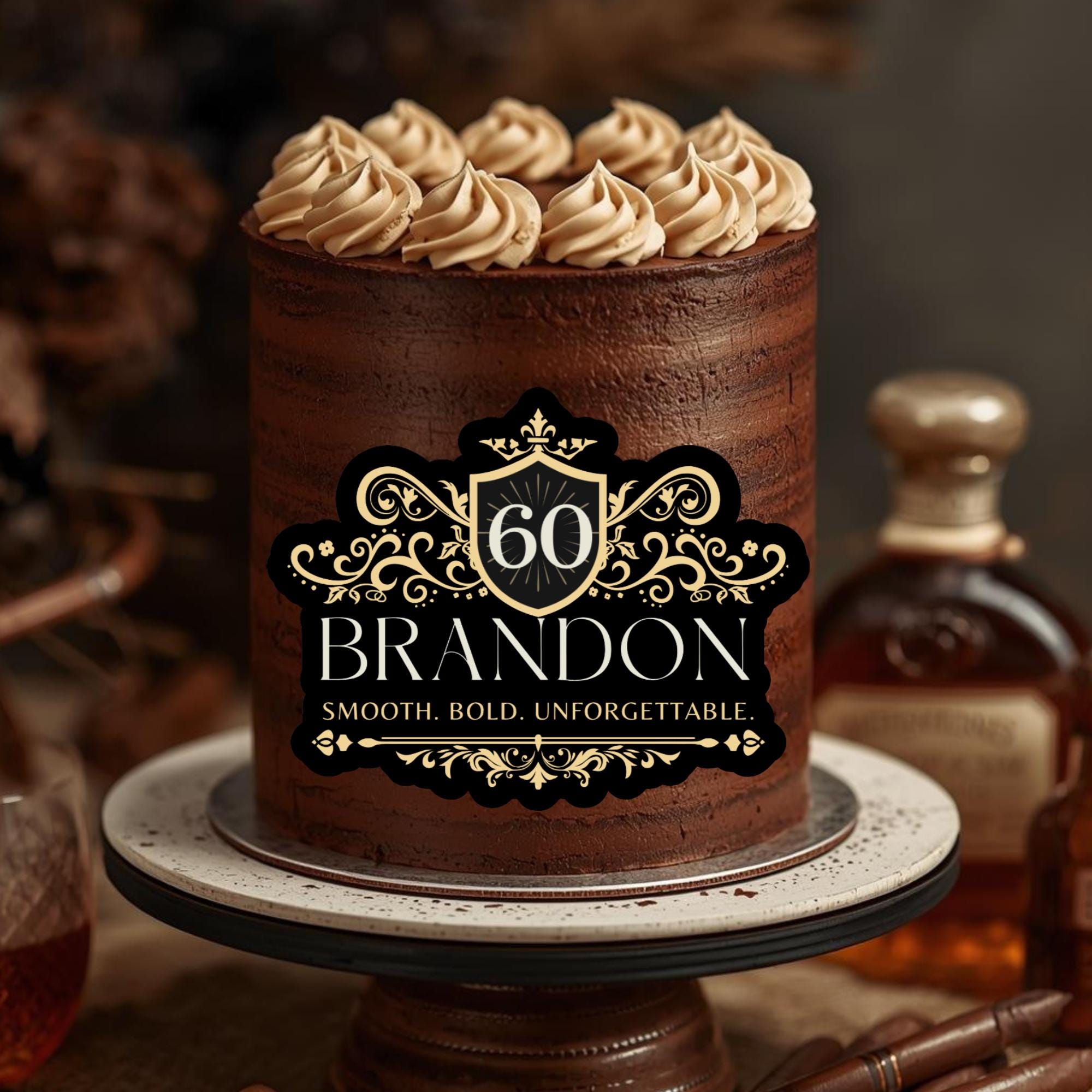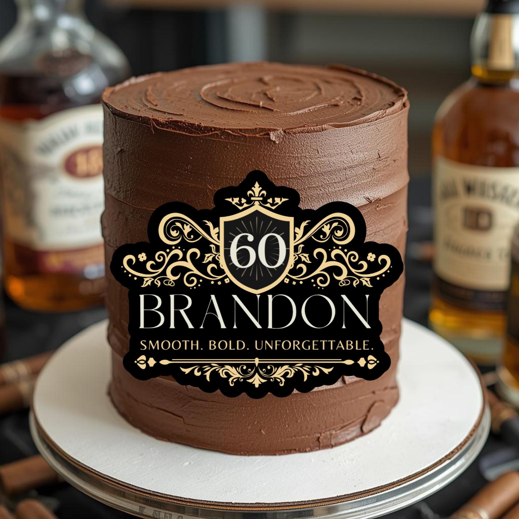 Raise a toast to the celebration with our custom whiskey-style cake topper, the perfect finishing touch for birthdays, anniversaries, or milestone parties. Designed to mimic a real whiskey label, each topper is personalized with your name, age, and location, creating a unique and unforgettable detail for your dessert table.