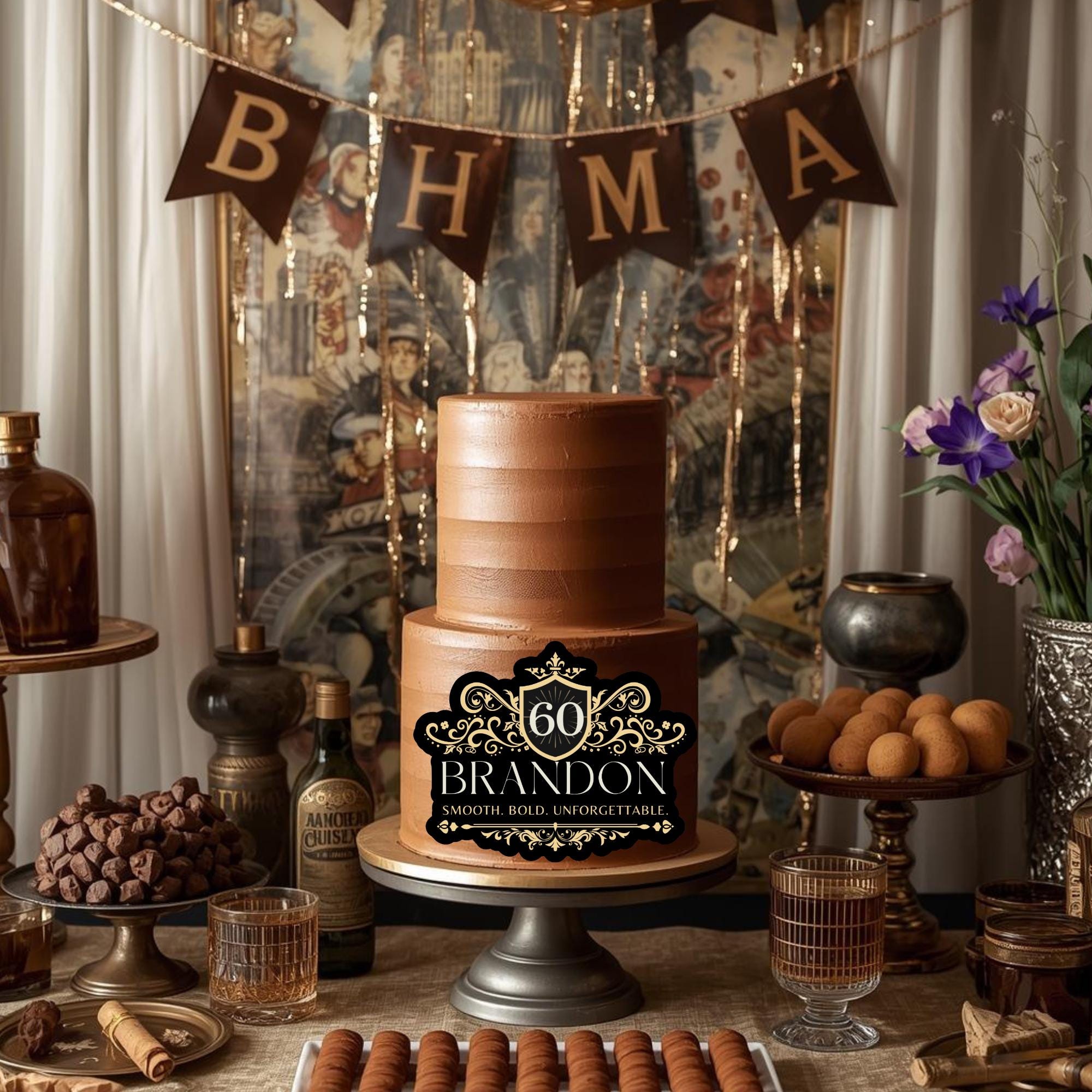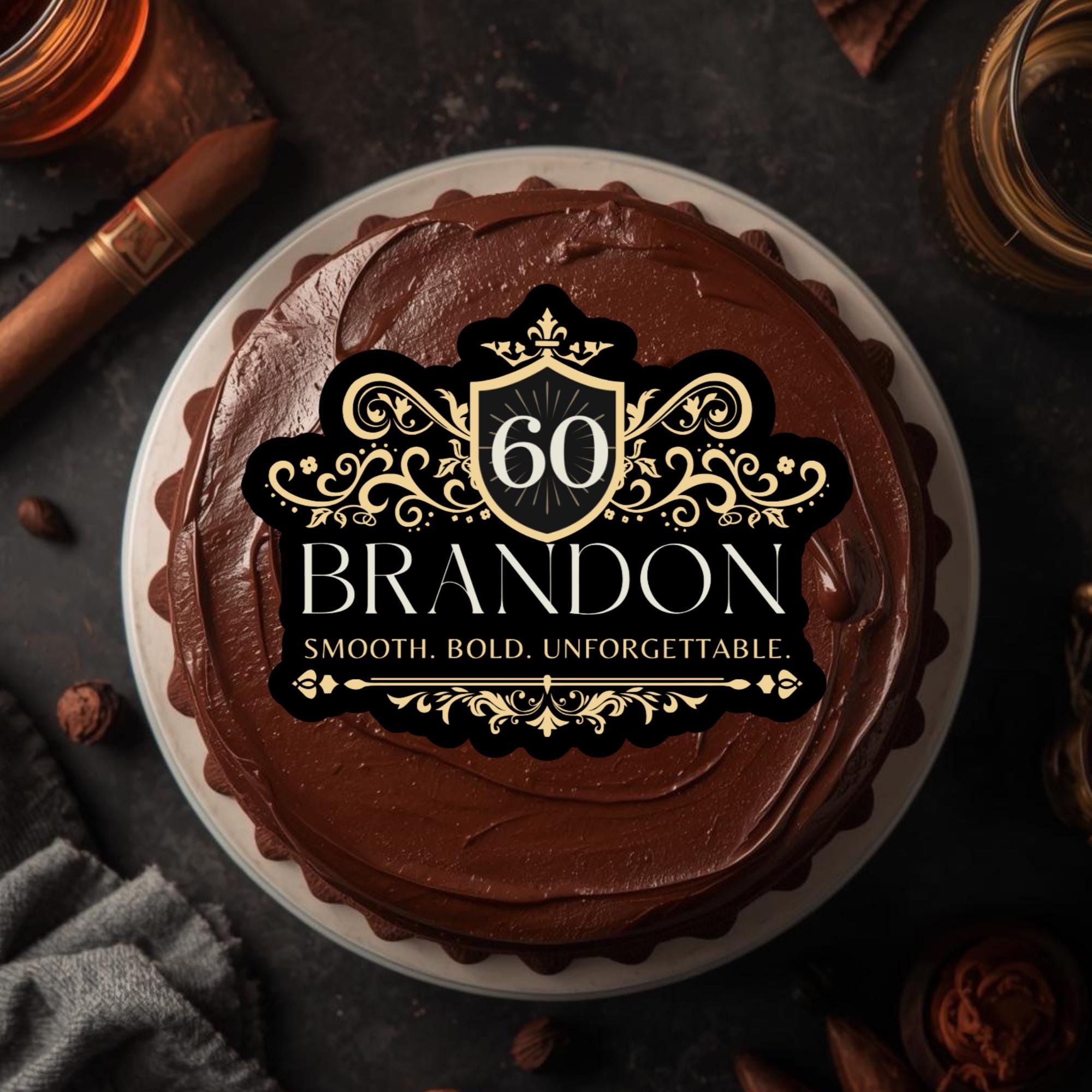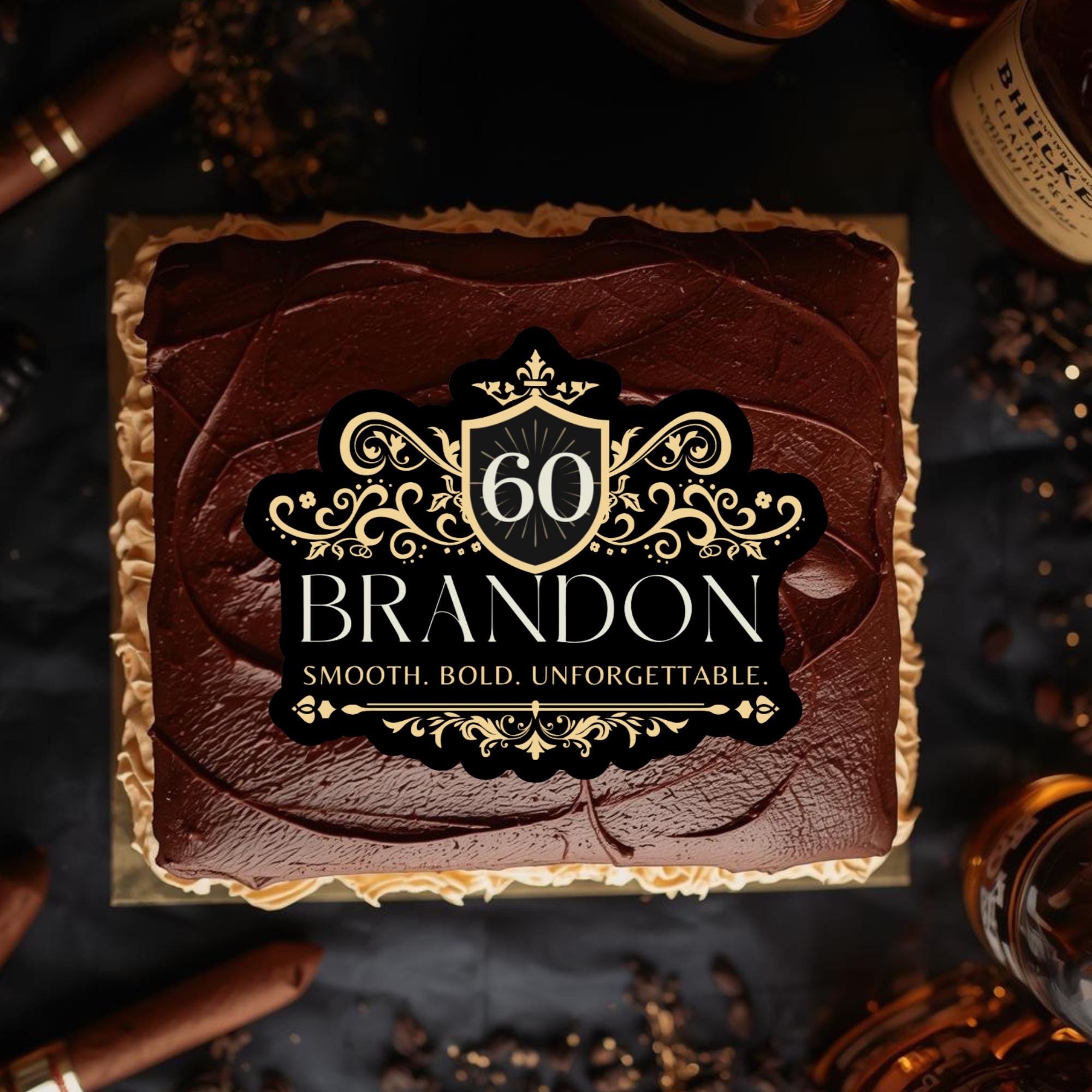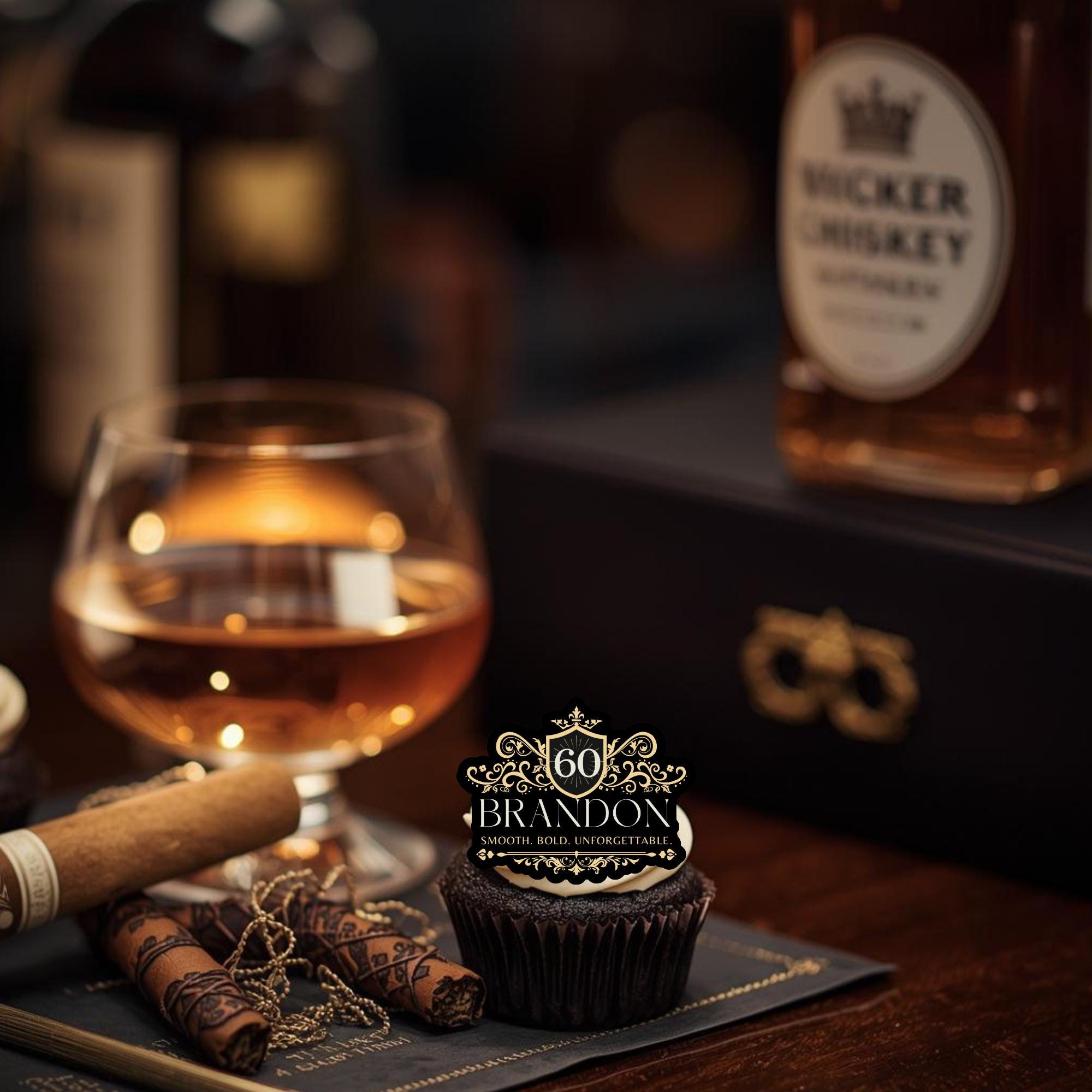 Raise a toast to the celebration with our custom whiskey-style cake topper, the perfect finishing touch for birthdays, anniversaries, or milestone parties. Designed to mimic a real whiskey label, each topper is personalized with your name, age, and location, creating a unique and unforgettable detail for your dessert table.
