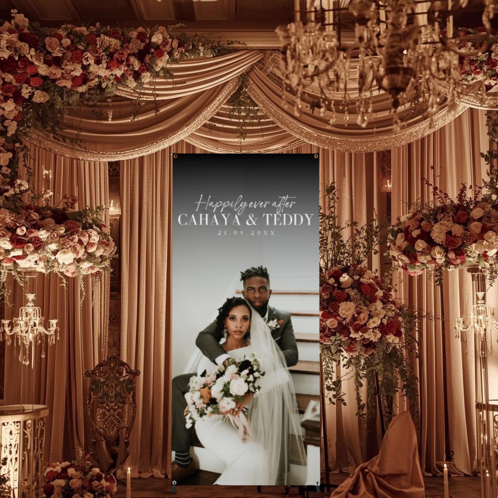 Make a stunning first impression at your wedding with our Custom Wedding Photo Vinyl Banner and Stand! Designed for elegance and ease, this personalized wedding signage is perfect for welcoming guests, photo backdrops, or decorating your venue with a touch of your love story.