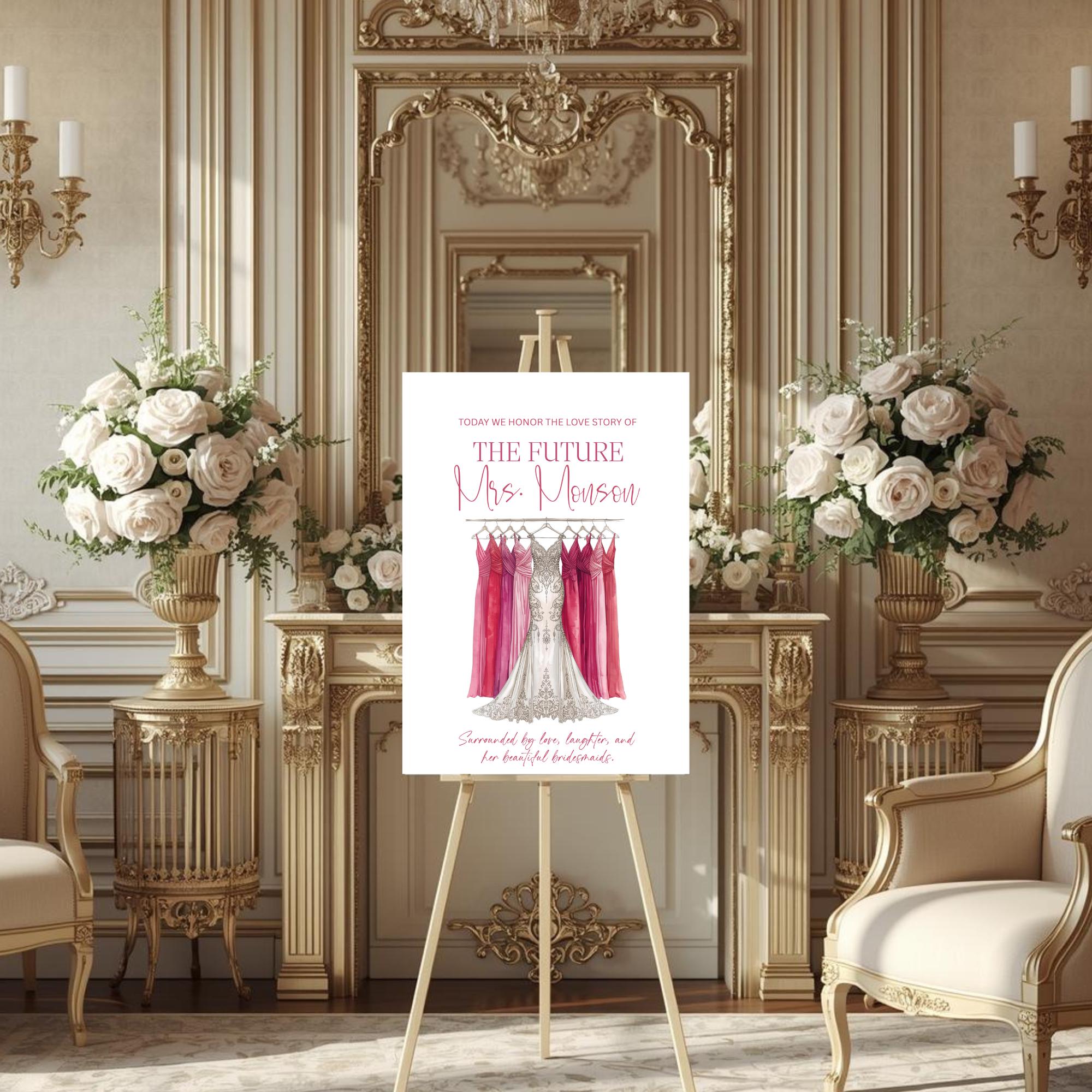 Bridal Suite Welcome Sign – Rose, Fuchsia & Raspberry Bridesmaid Dress Theme, Instant Download Editable in Canva
