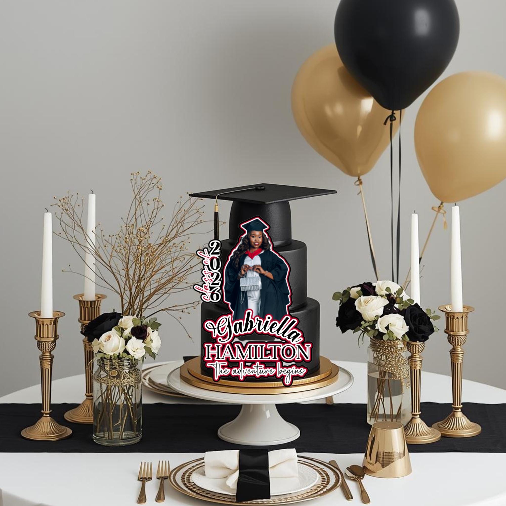 Celebrate your graduate in style with this custom 3D Layered Graduation Cake Topper featuring their photo, name, and school colors! Each topper is crafted with multiple dimensional layers for a bold, standout look that elevates any cake or dessert table. Perfect for high school, college, and senior celebrations for Class of 2025 or 2026.