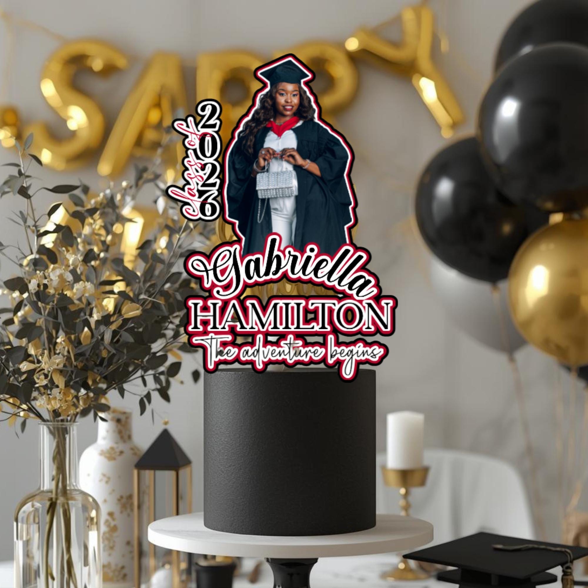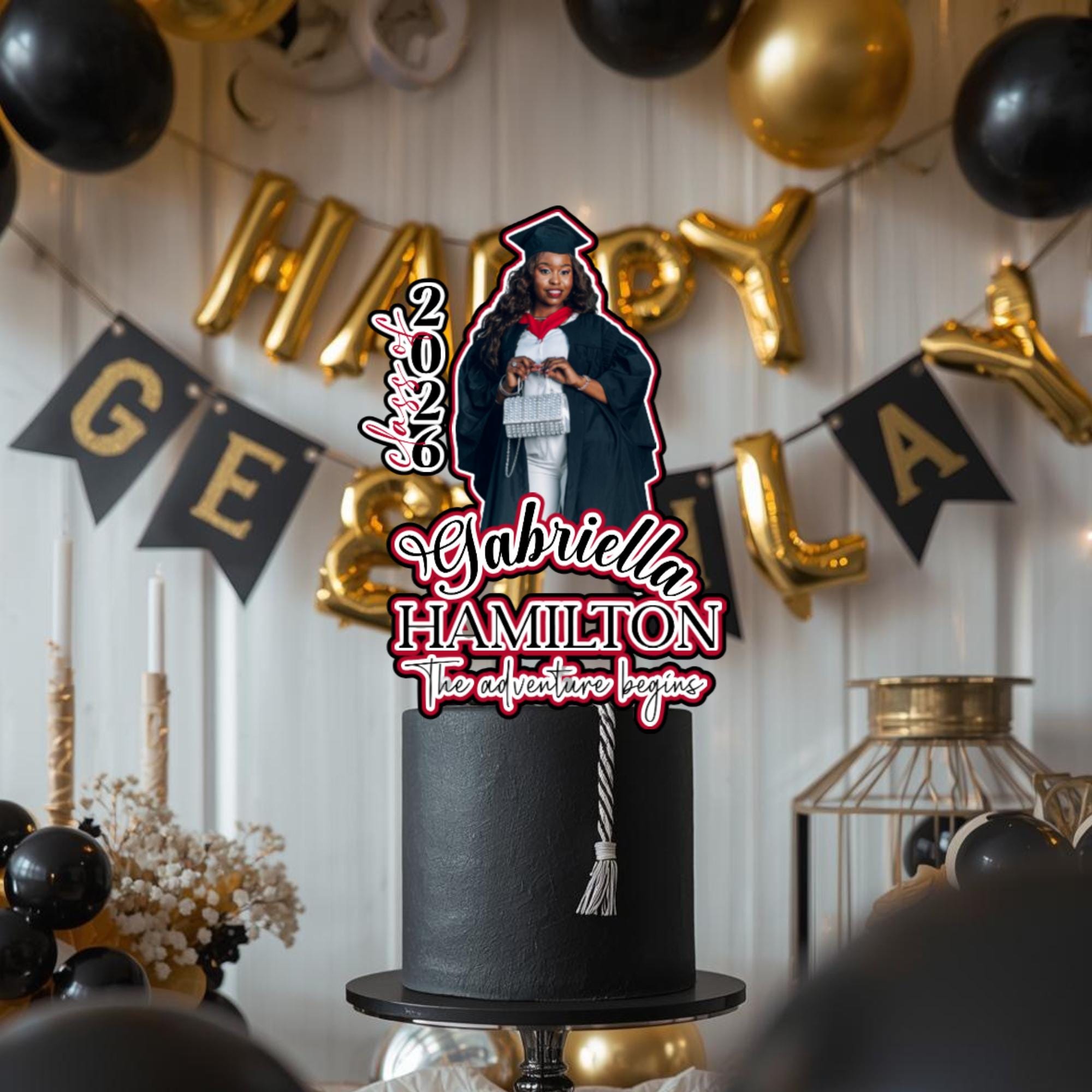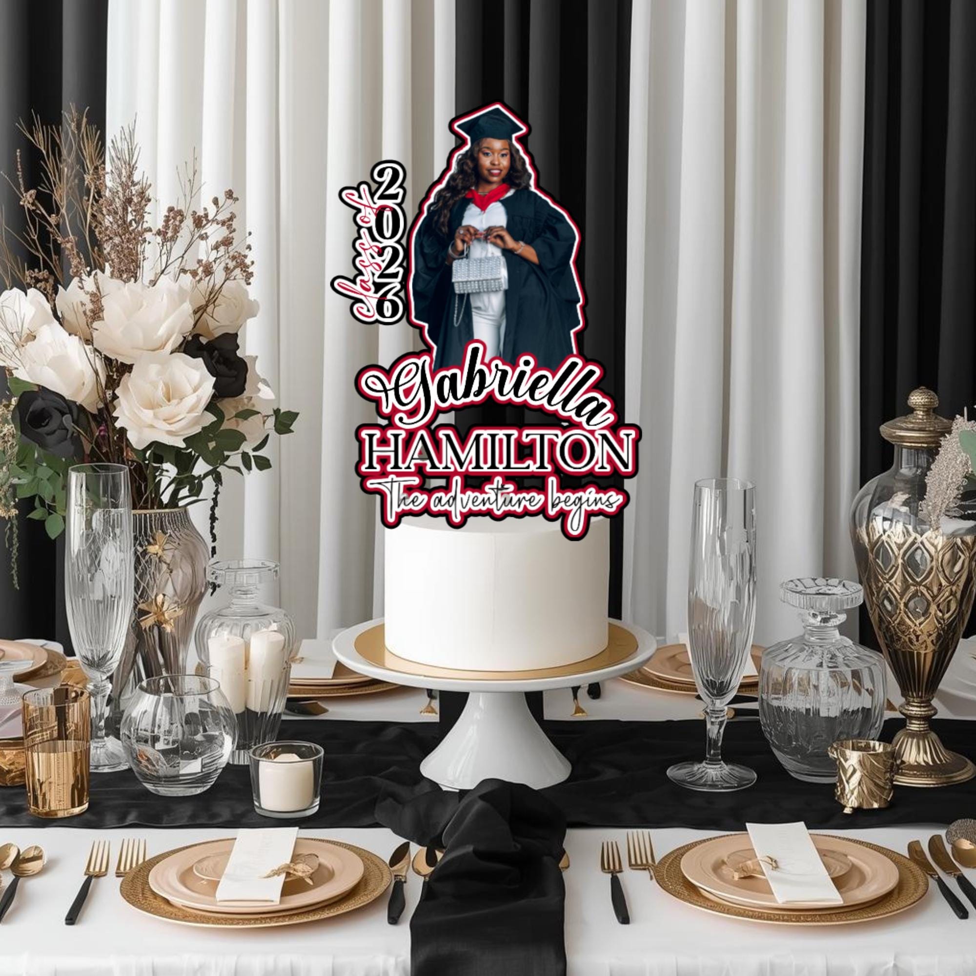 Graduation Cake Topper 2025 2026 | Custom Name & Photo Cutout Topper | Personalized Senior Cake Decoration | Class of 2025/2026 3D Layered Grad Topper