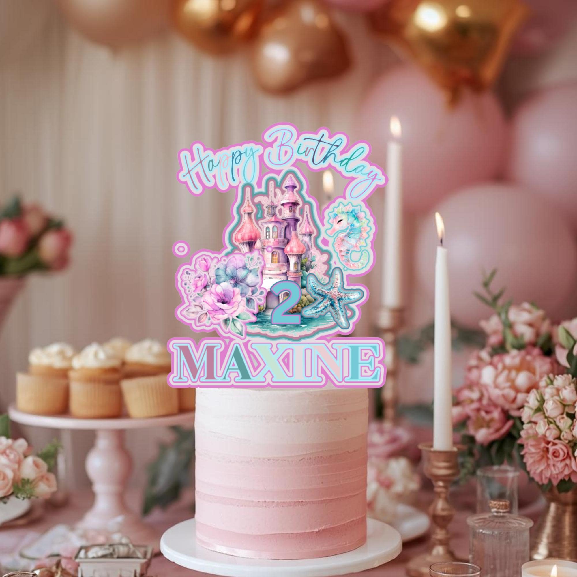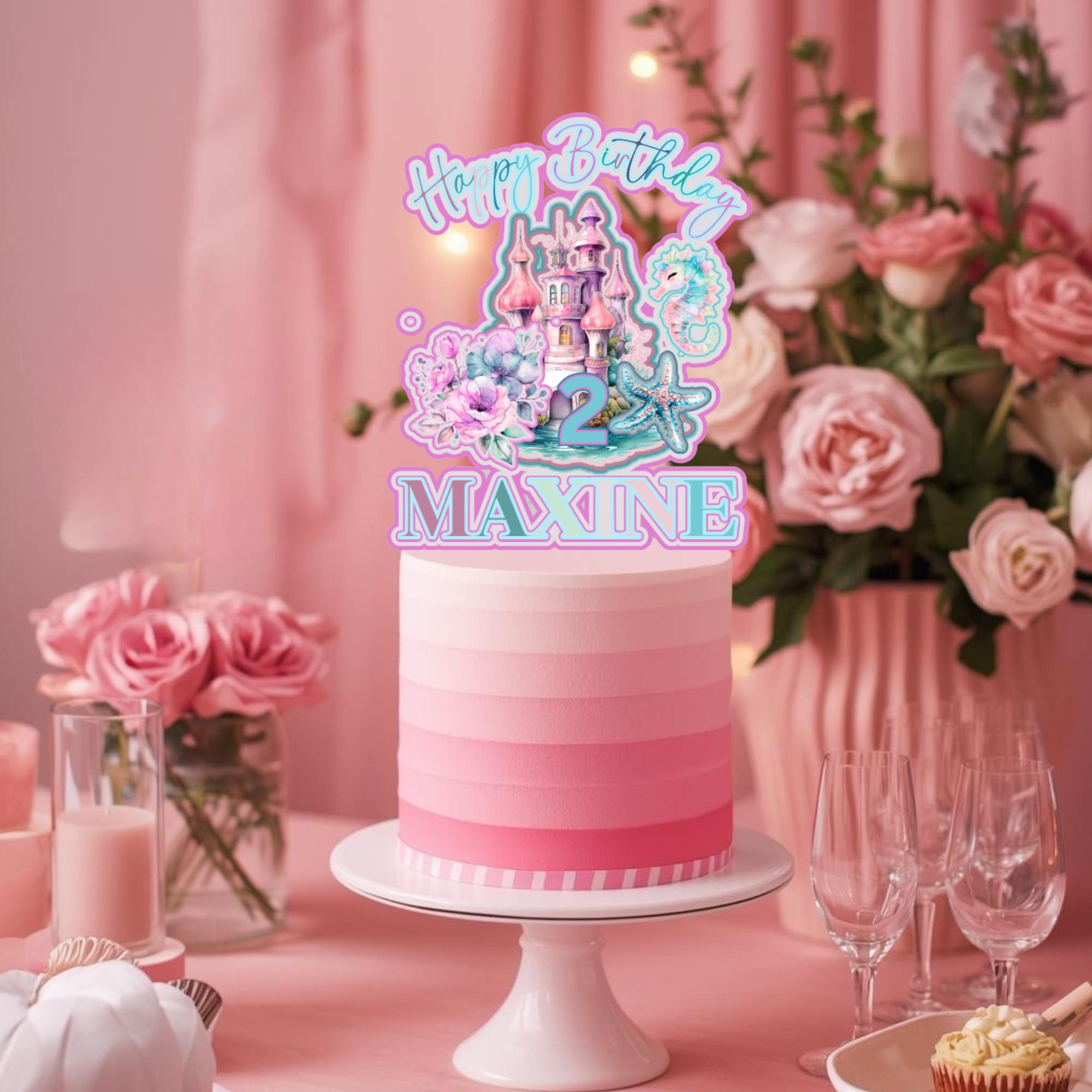 Mermaid Castle Cake Topper with Name & Age | Edible or 3D Cupcake Toppers | Under the Sea Birthday Party Decor | Princess Mermaid Theme