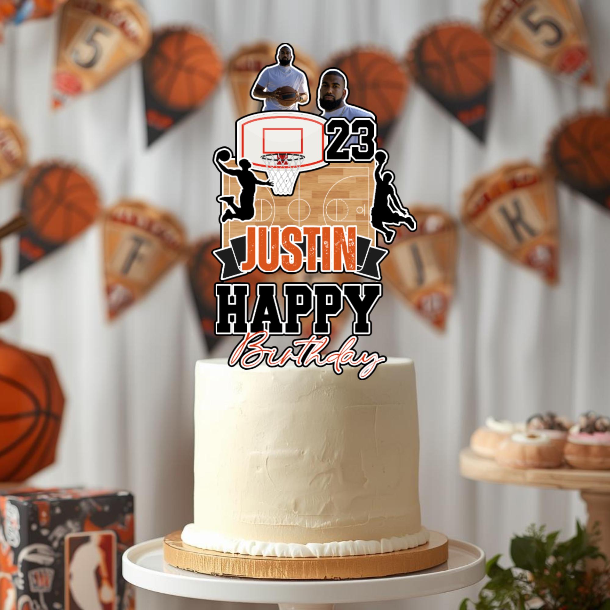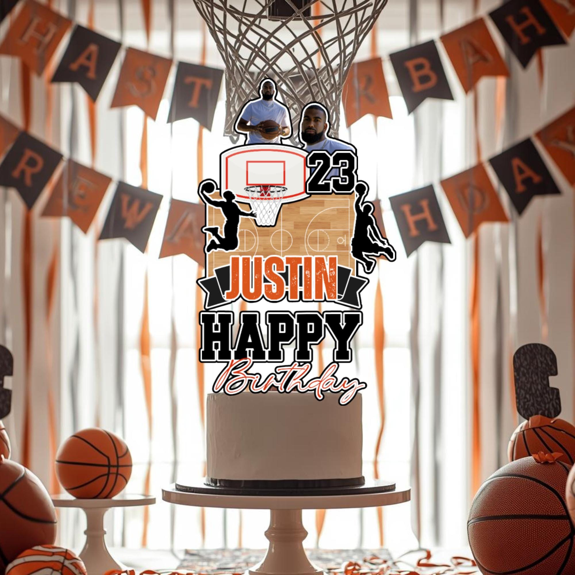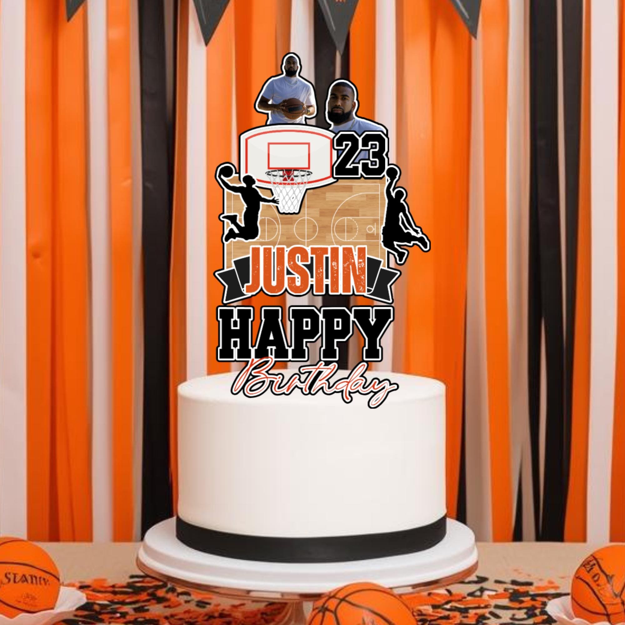 Personalized Basketball Photo Cake Topper | 3D Basketball Birthday Cake Topper | Custom Age Name Sports Cupcake Toppers