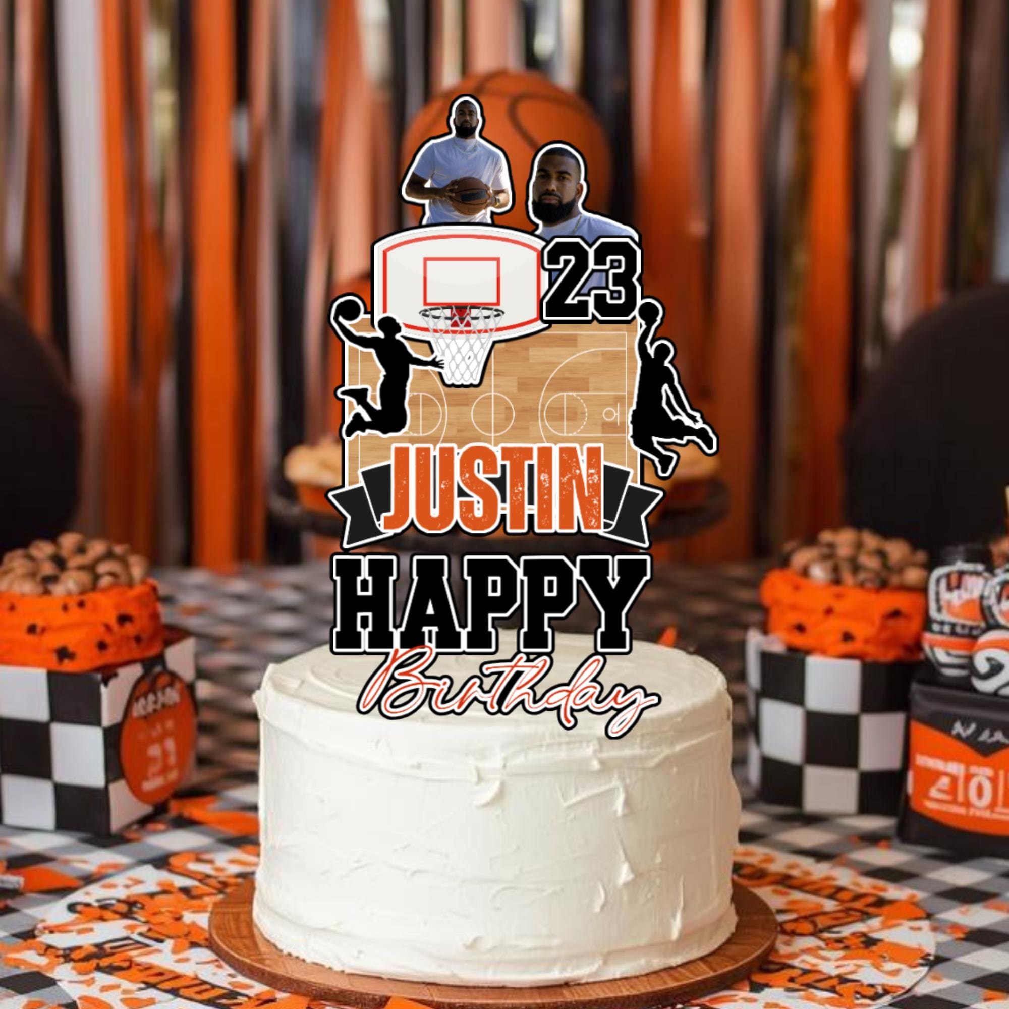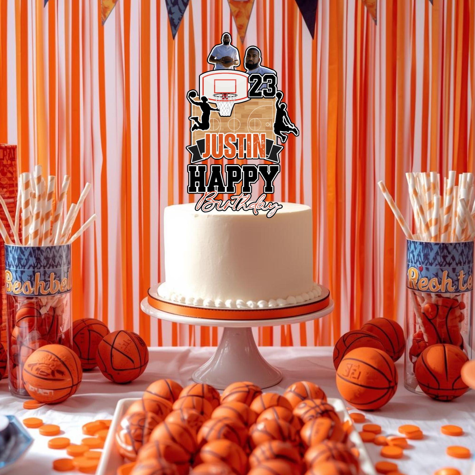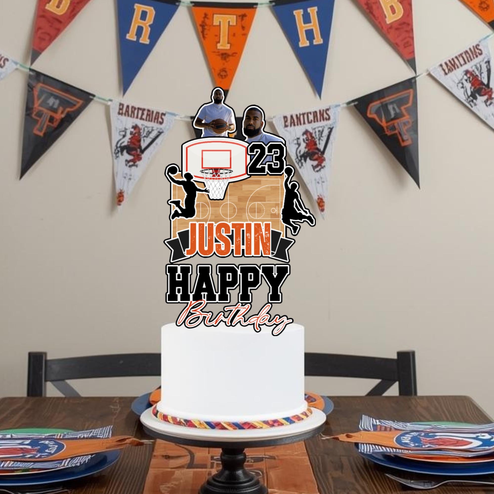 Personalized Basketball Photo Cake Topper | 3D Basketball Birthday Cake Topper | Custom Age Name Sports Cupcake Toppers