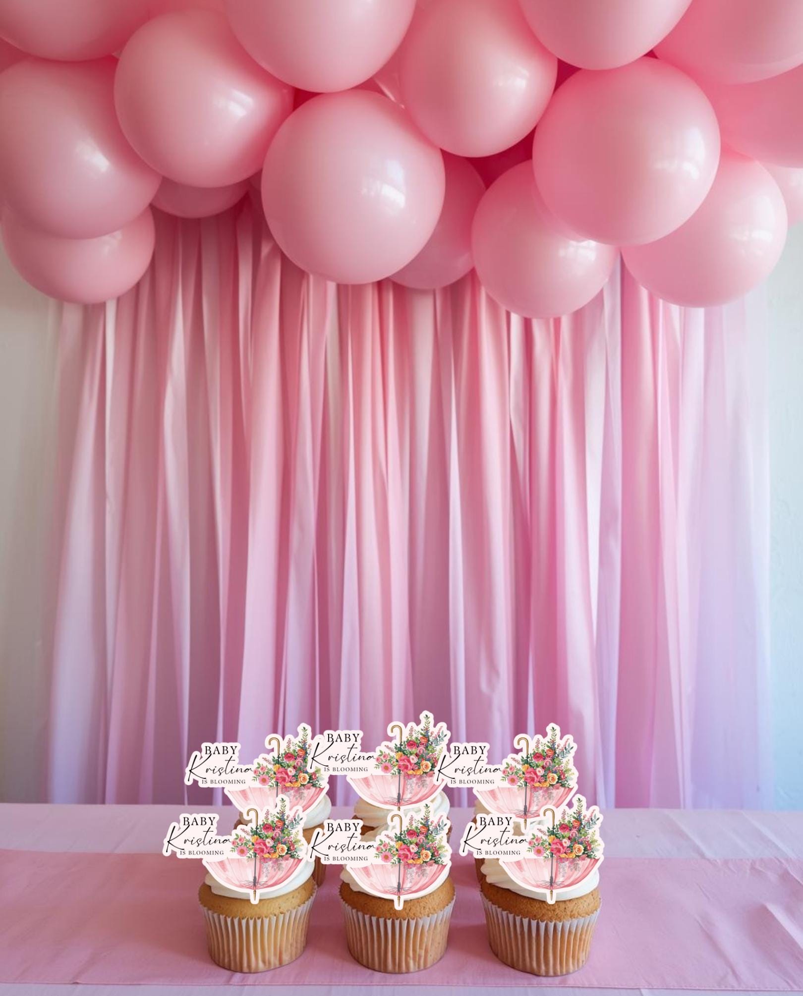 Celebrate your little one with our April Showers “A Baby Is Blooming” Pink Umbrella Cupcake Toppers, perfect for baby showers, spring celebrations, and floral-themed parties. These sweet umbrella designs add a charming, cohesive touch to desserts and party displays.