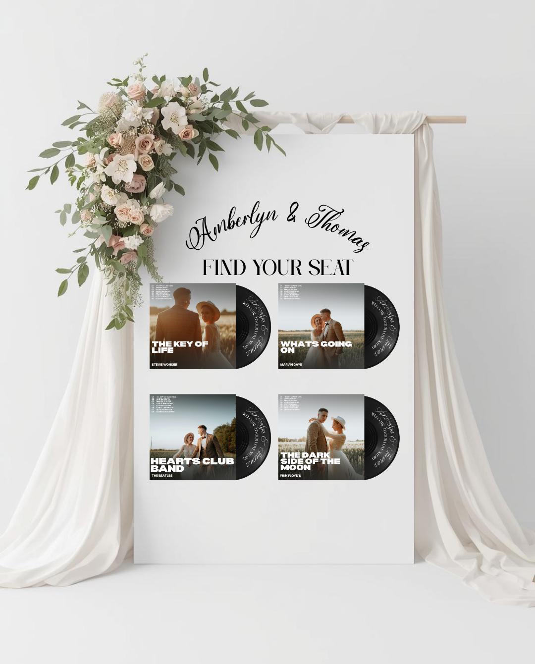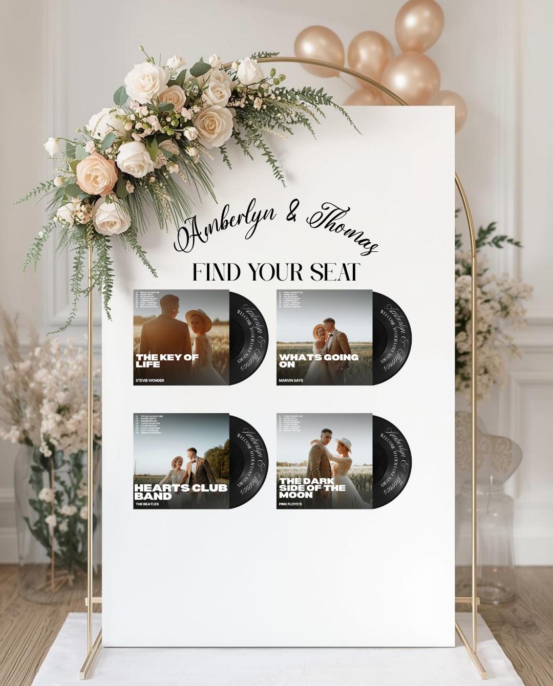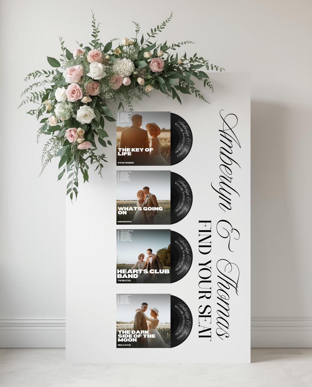 Custom Vinyl Record Wedding Guest Seating Chart | Personalized 12” Album Cover Seating Chart | Music Theme Wedding Decor | Bride Groom Names