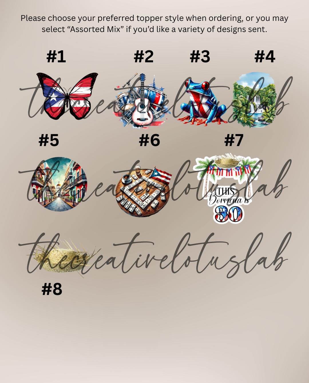 Celebrate your event with Puerto Rico themed cupcake toppers, perfect for birthdays, fiestas, and Boricua pride celebrations. These toppers are available in multiple material options to fit your needs and style.