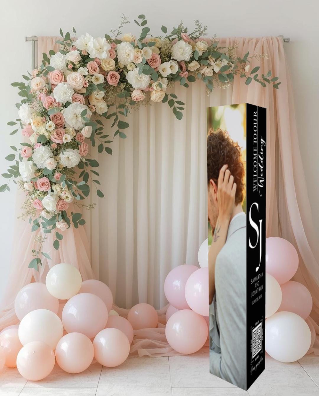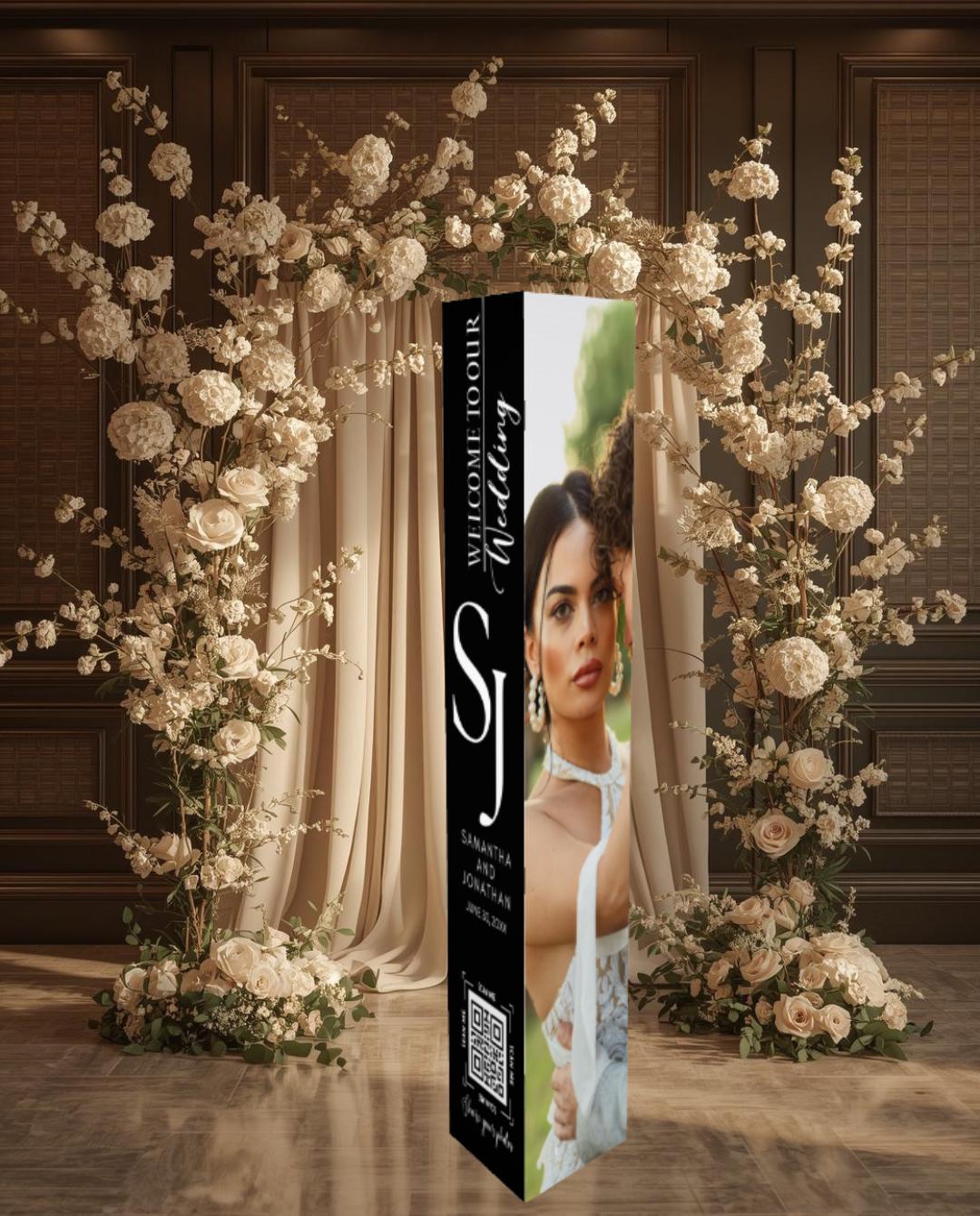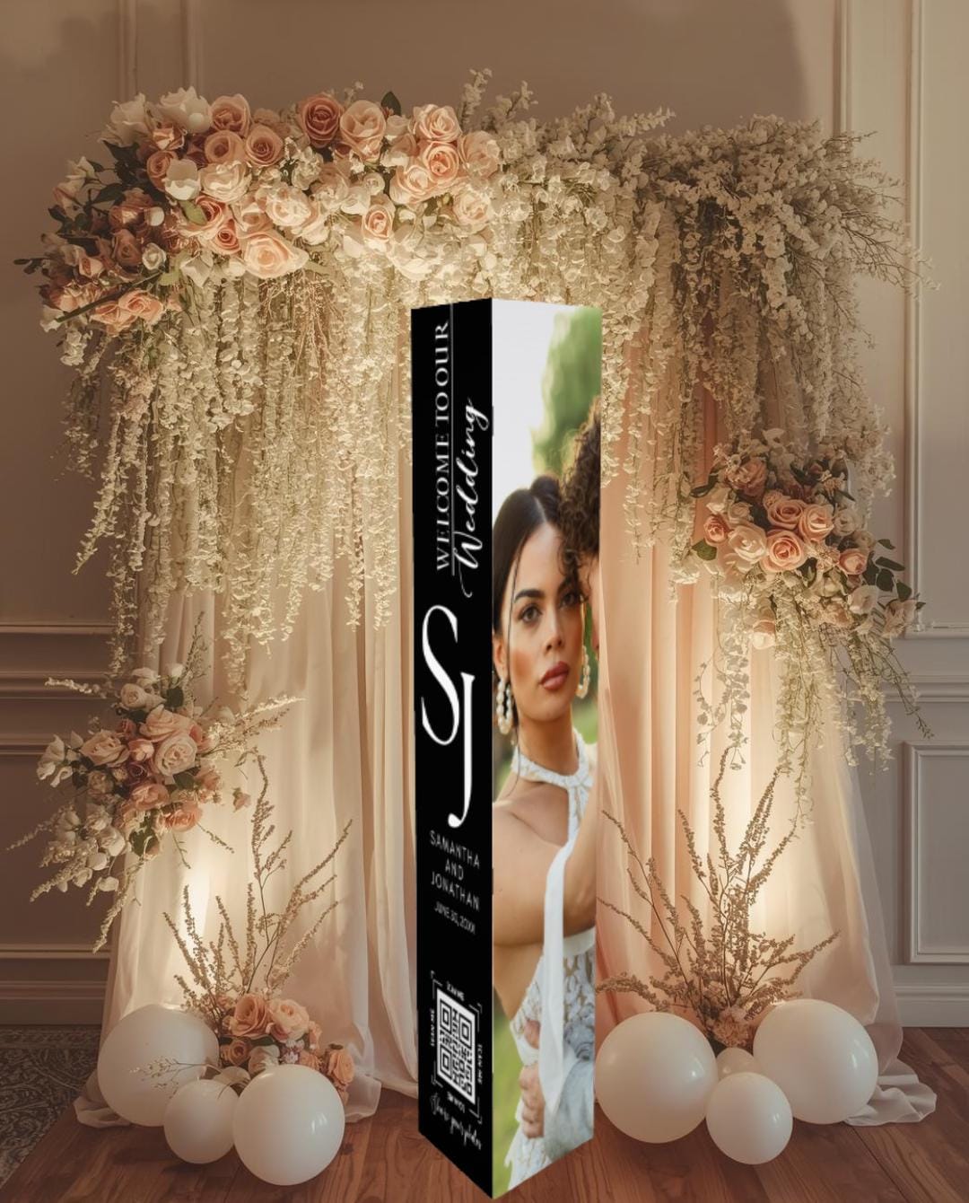 Create a stunning focal point for your event or business space with this Custom 3-Sided Totem Display Sign. Perfect for weddings, receptions, pop-ups, retail shops, grand openings, birthday parties, corporate events, and photo displays. This self-standing signage is designed to showcase photos, names, logos, or messages from multiple angles for maximum visibility.