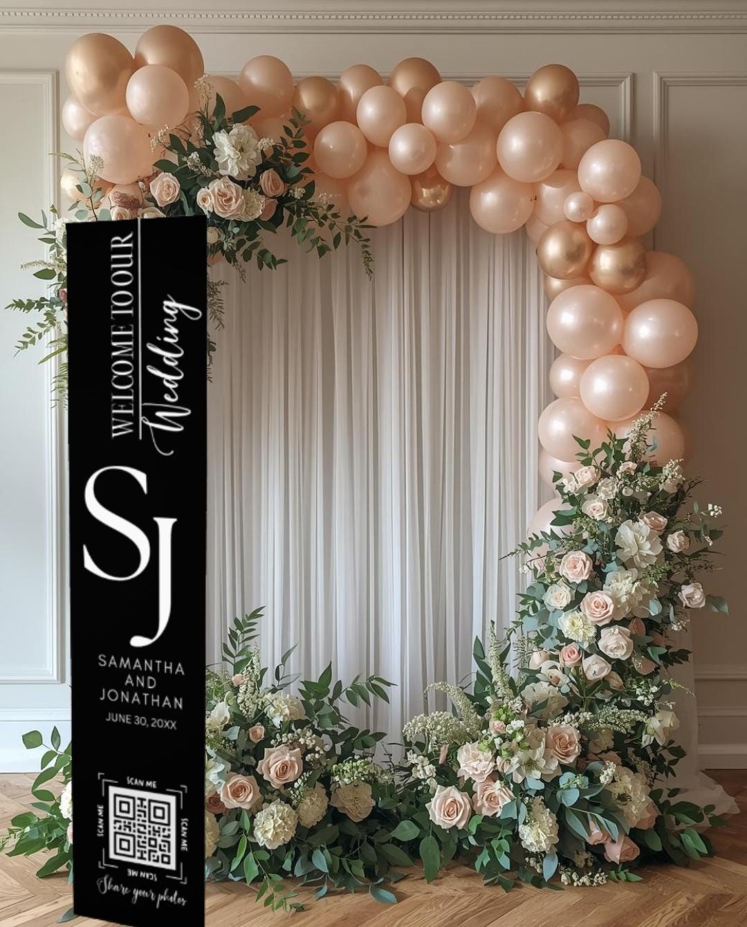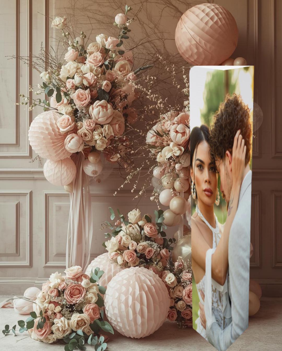 Custom Wedding 3-Sided Totem Sign | Photo Reception Display, Tri-Side Floor Sign with Names & Date