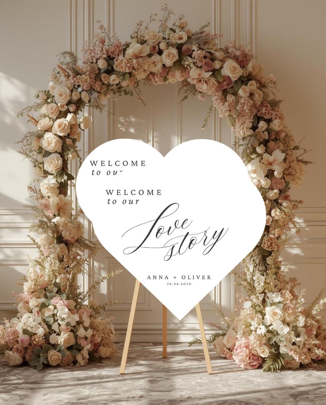 Heart Shaped Wedding Welcome Sign, Romantic Entrance Decor, Bridal Reception Sign, Custom Names Date, Ceremony Entrance Display