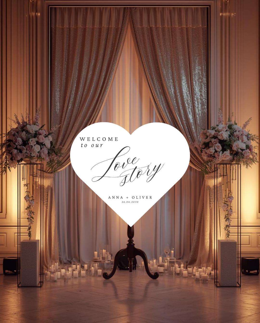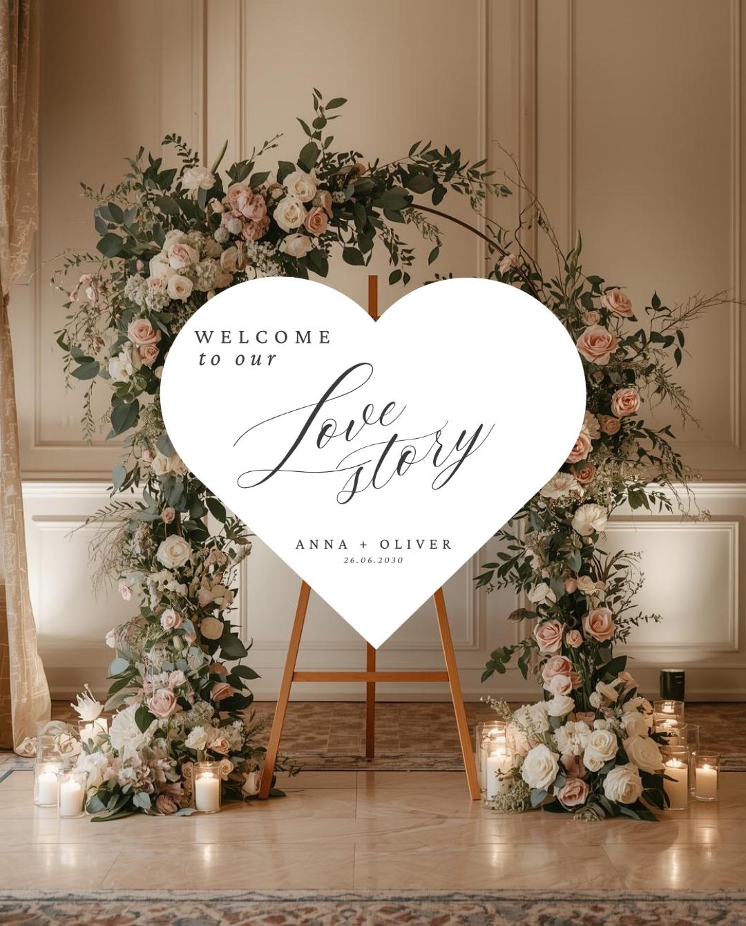 Heart Shape Wedding Entrance Sign – Personalized Welcome Decor
