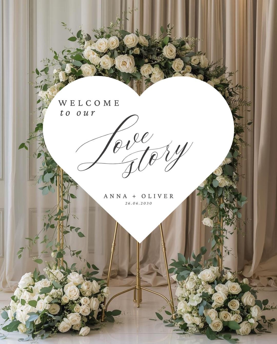 Create a beautiful first impression for your special day with our Heart Shaped Wedding Entrance Sign. This romantic and elegant sign is fully customizable and designed to welcome your guests in style at your ceremony or reception.