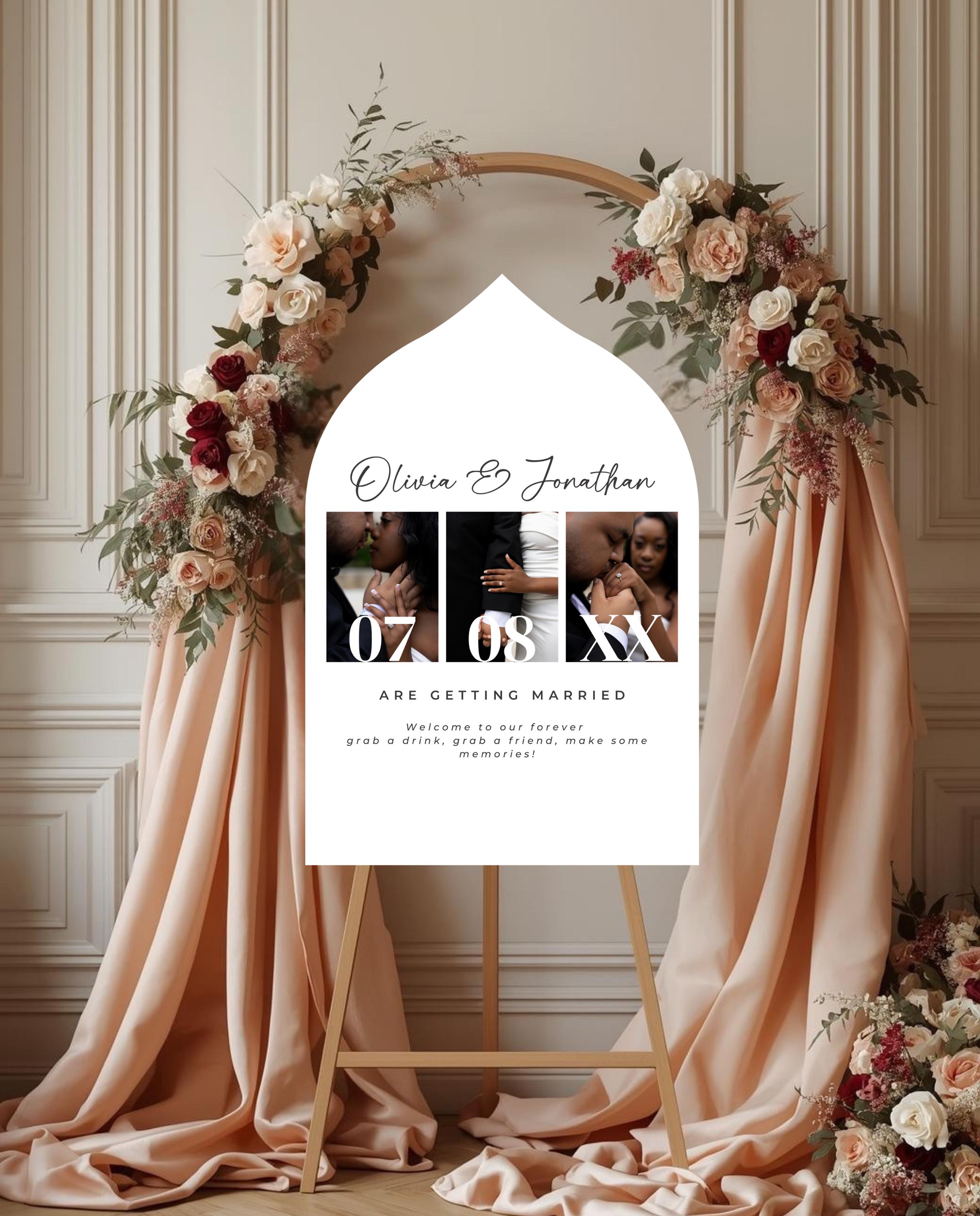 Create a stunning first impression for your special day with a custom Photo Arch Wedding Welcome Sign designed to beautifully welcome your guests. This elegant arch-shaped sign is personalized with your photo, names, and event details, making it both meaningful décor and a timeless keepsake you can treasure long after the celebration.