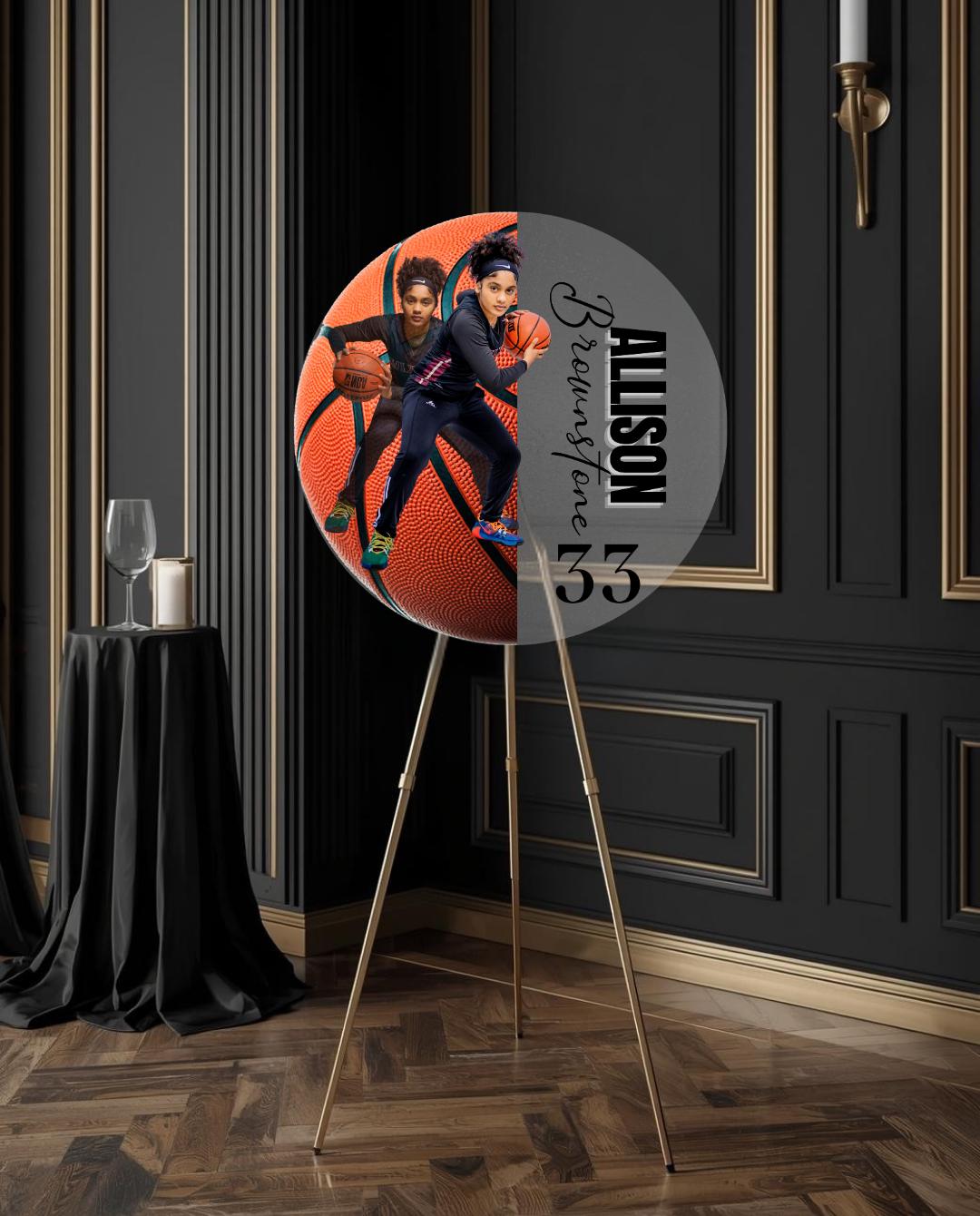 Basketball Photo Welcome Sign Acrylic Circle Keepsake – Custom Sports Party Entrance Decor