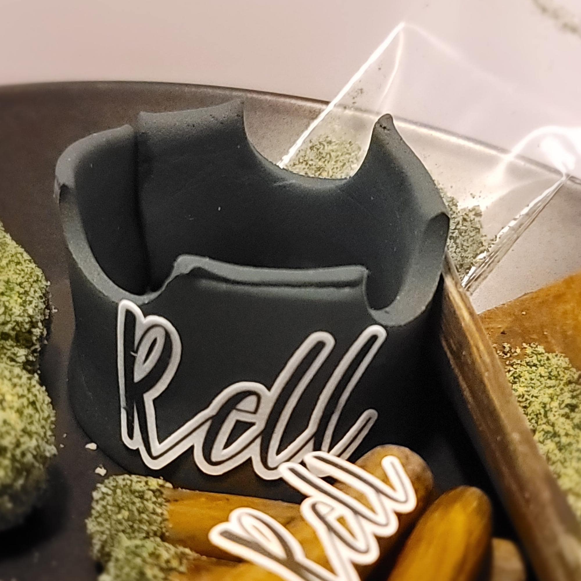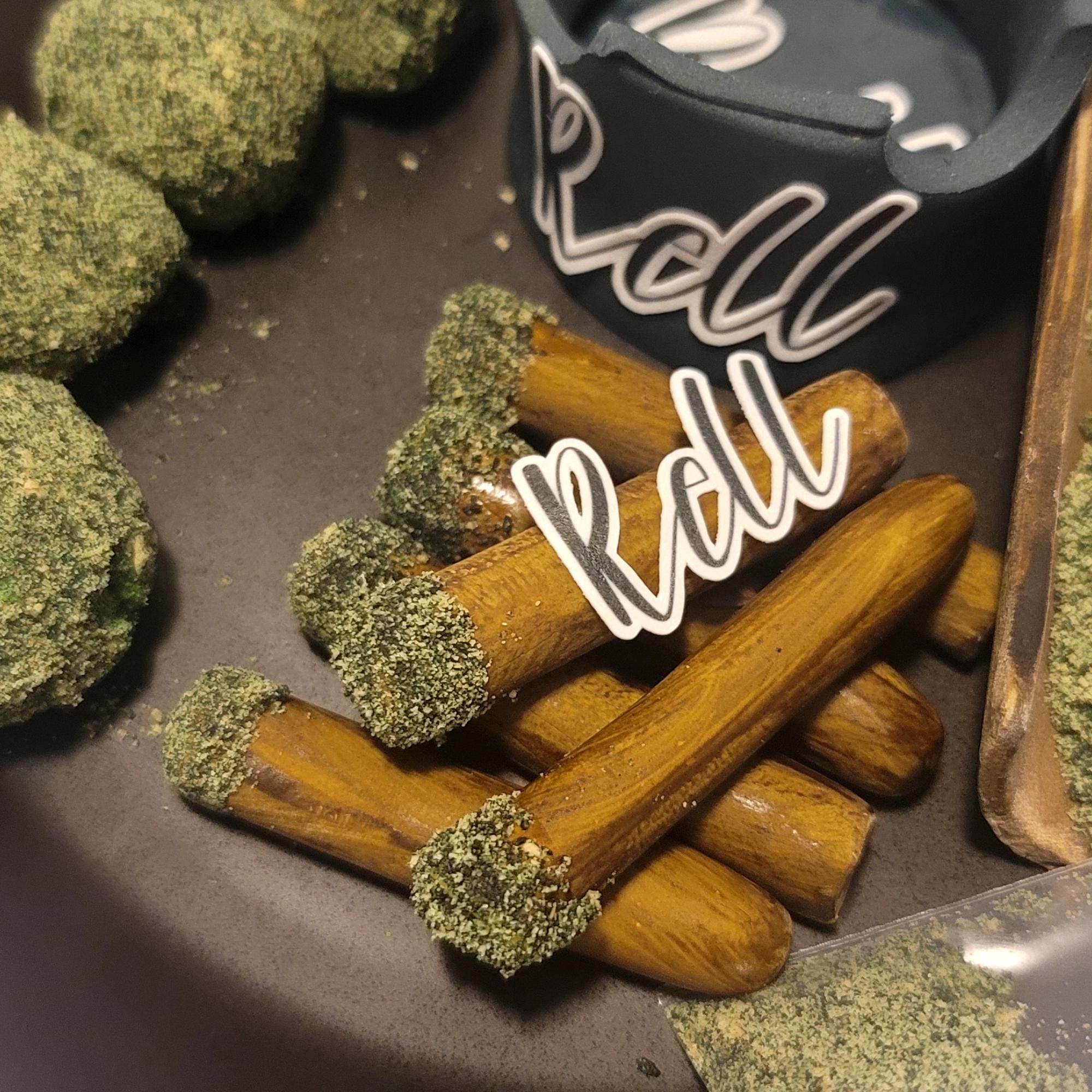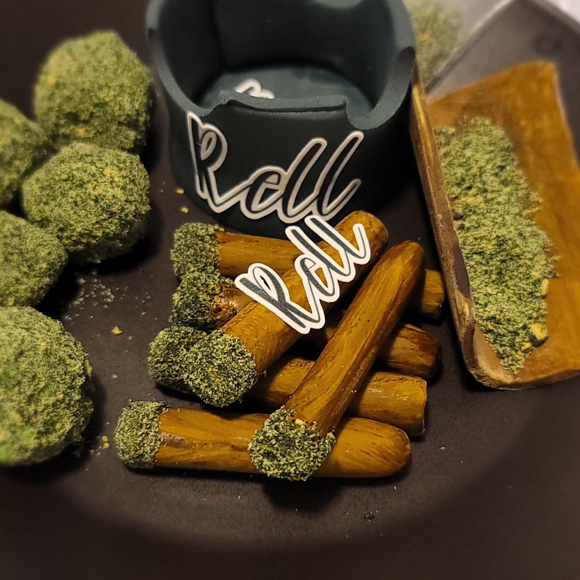 Each blunt is handmade from fondant and detailed with graham cookie crumbs to create a realistic “shake” effect. Every piece is individually crafted and painted by hand for a unique, high-quality edible decoration.
