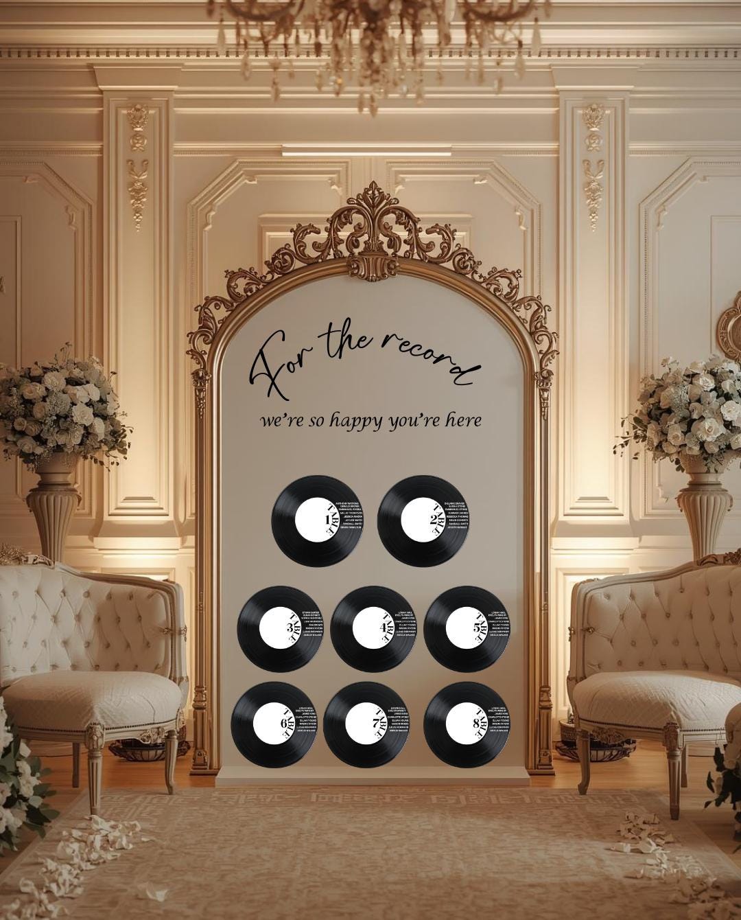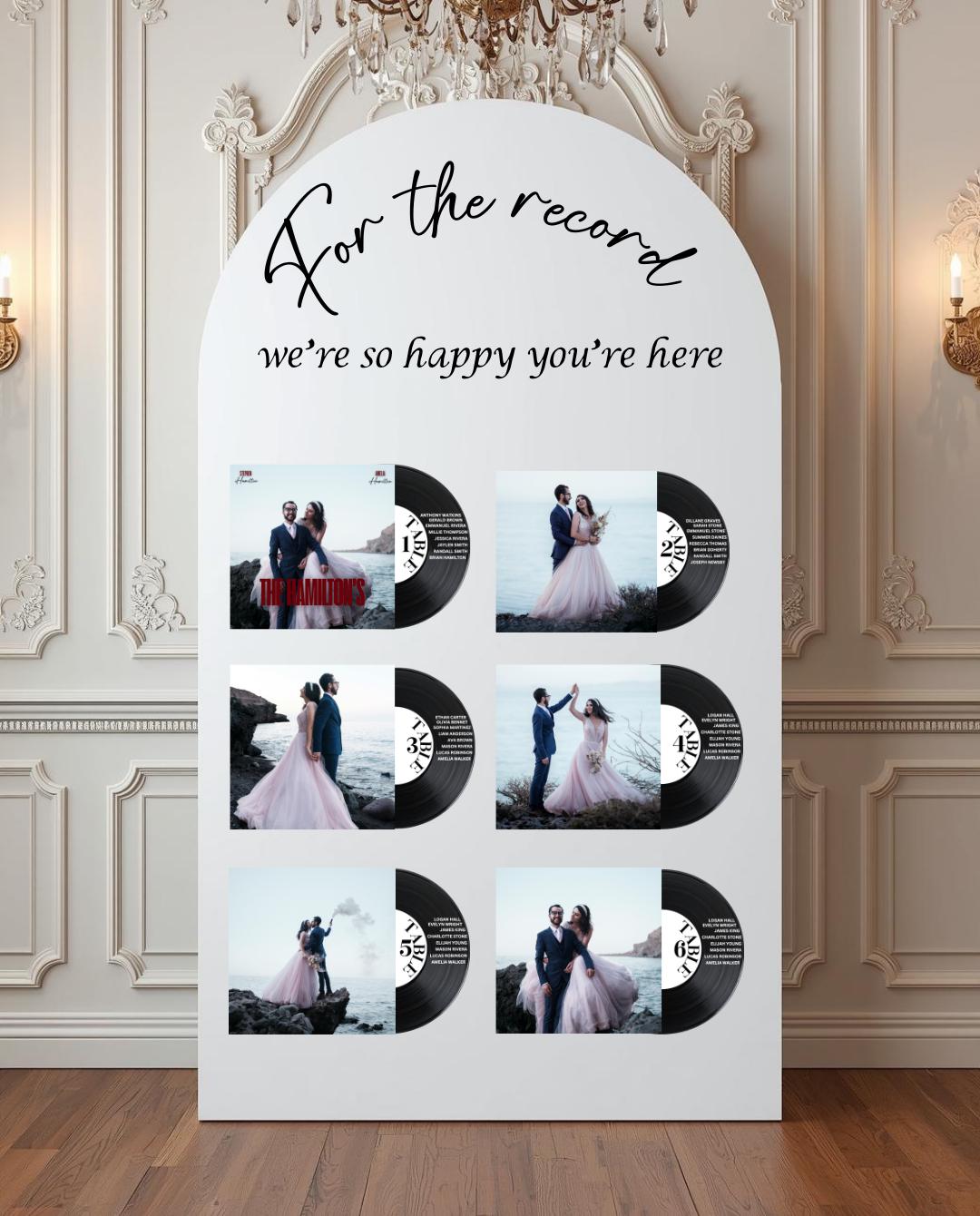 • Vinyl Record Only – 12" faux record personalized with guest names and table number