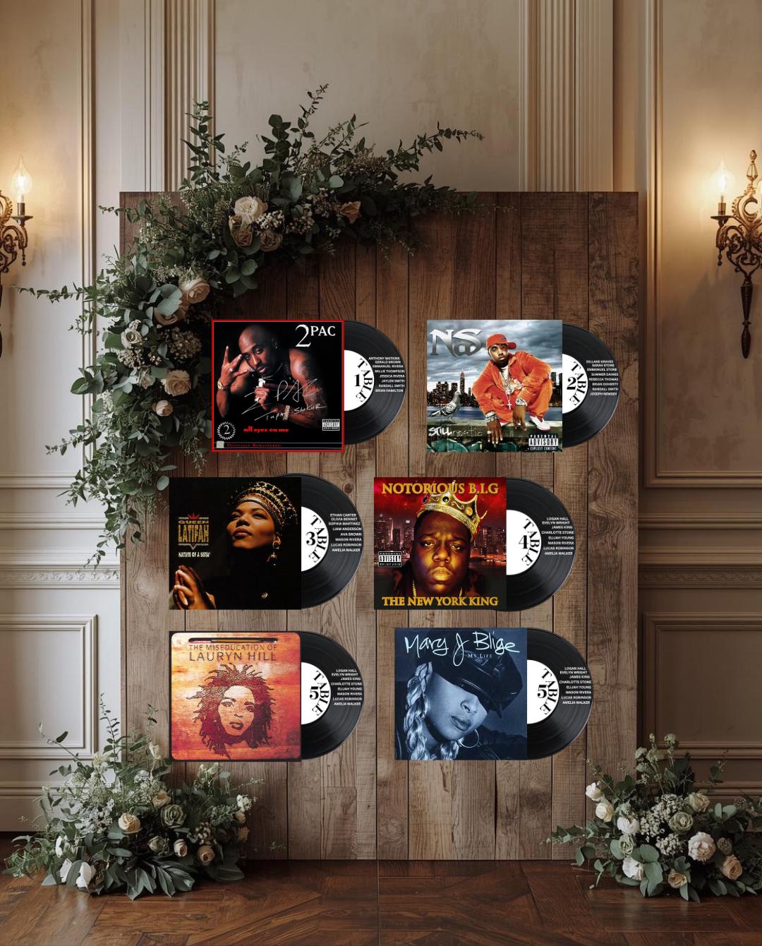 Vinyl Record Seating Chart Table Numbers, Custom Faux Records with Guest Names, Music Theme Wedding Decor, Personalized Album Cover Record Jackets