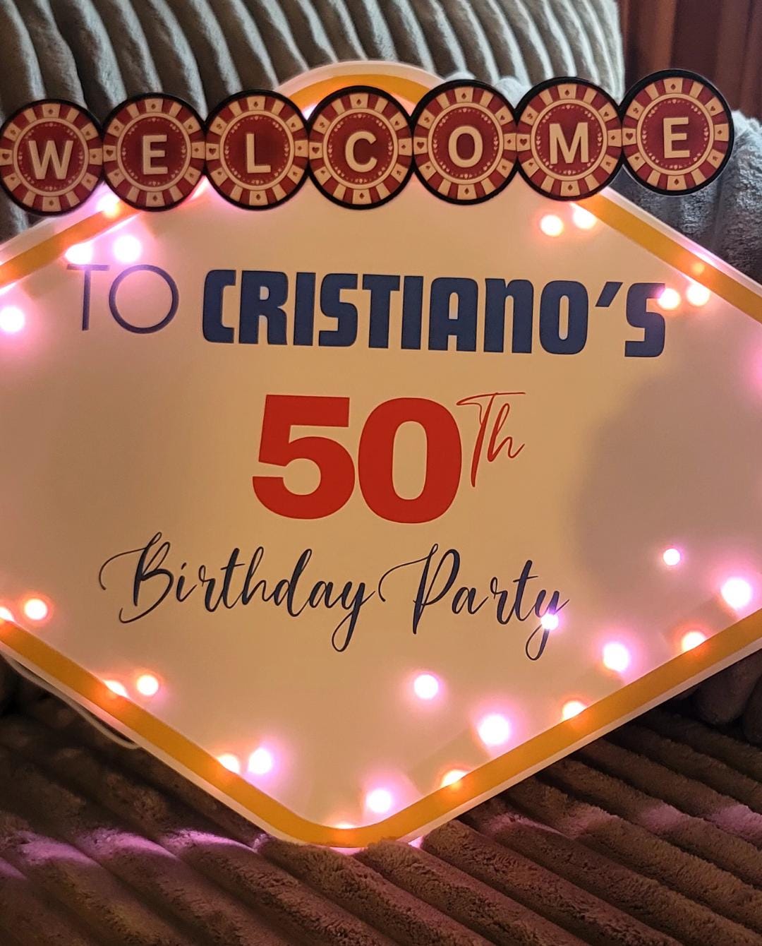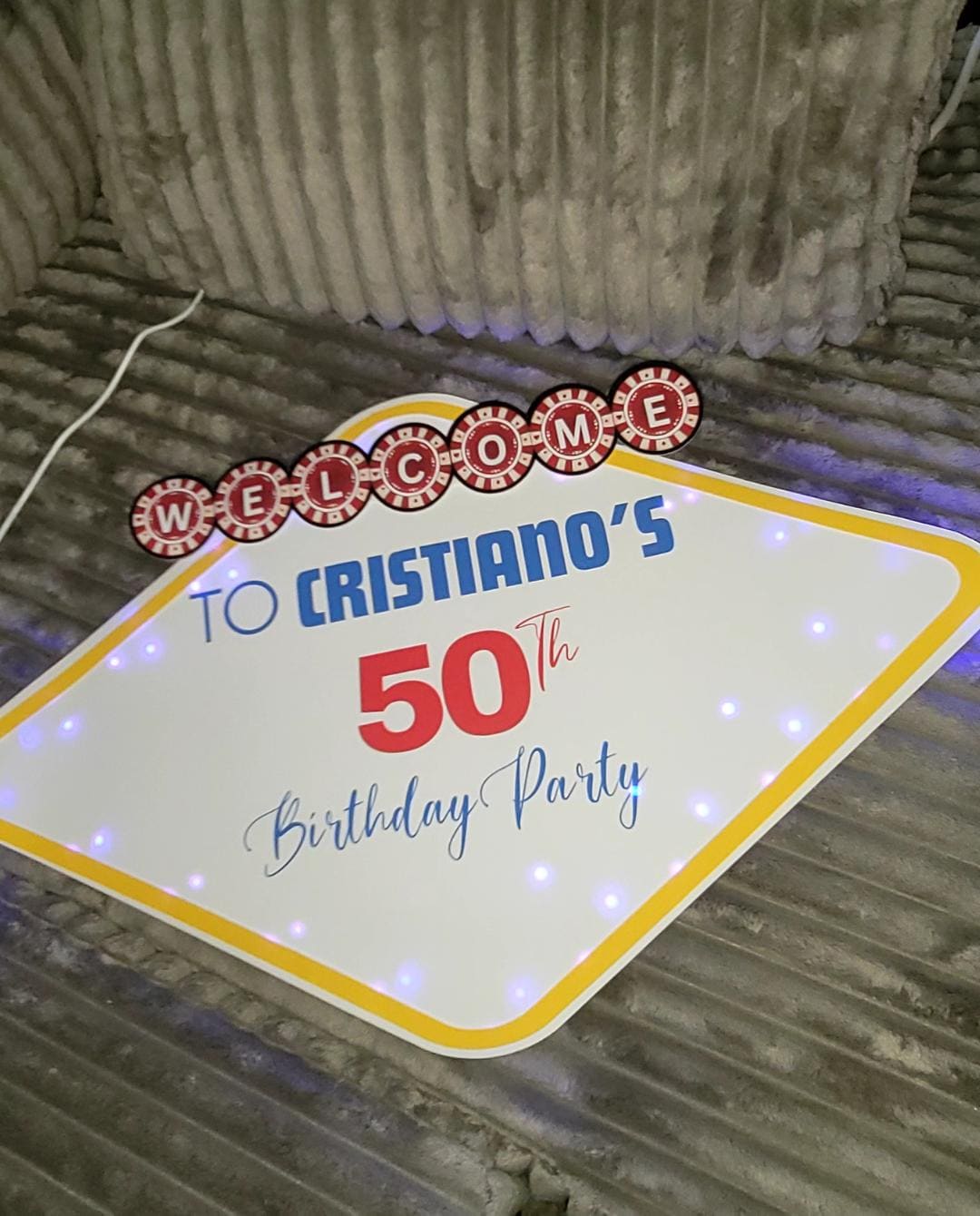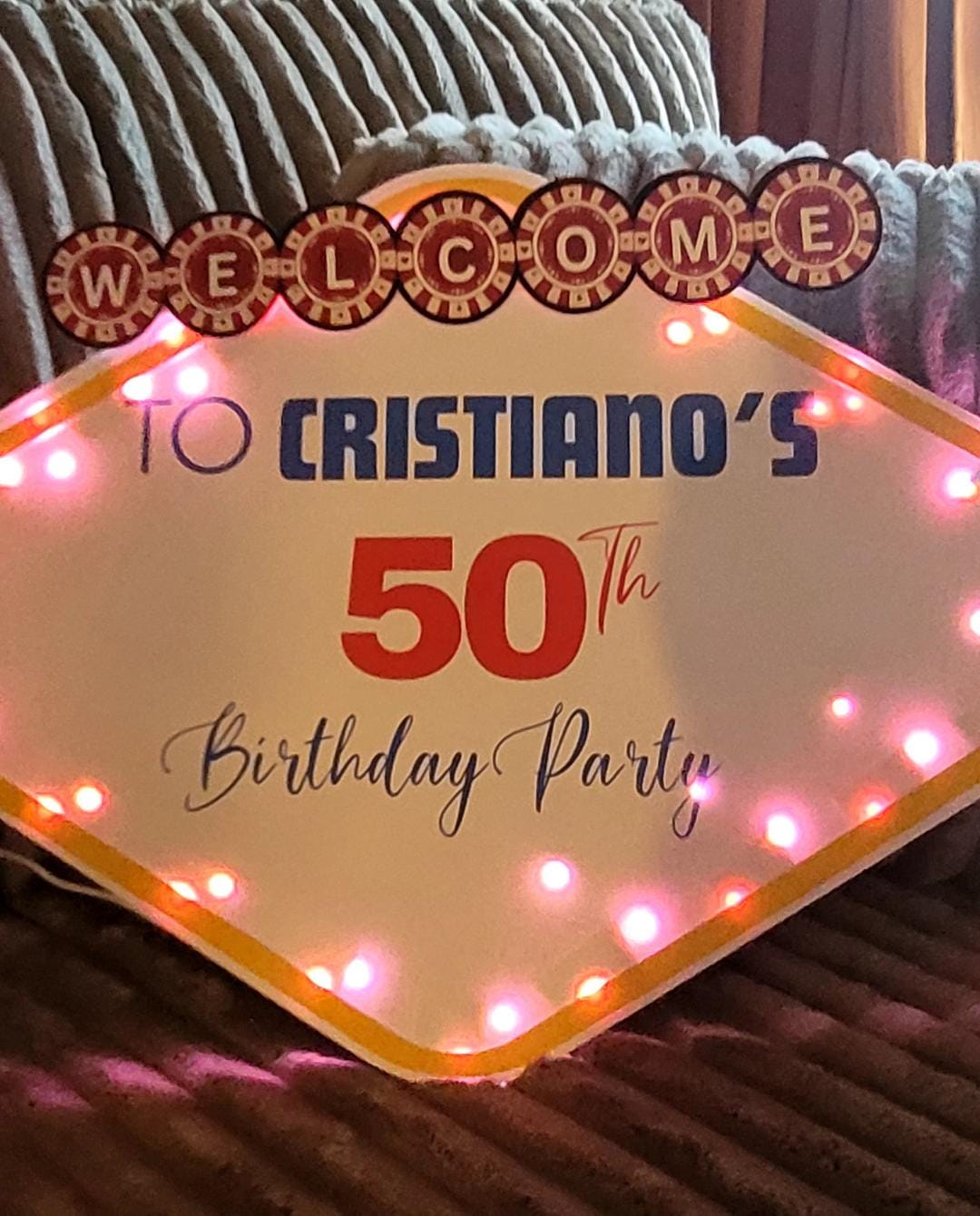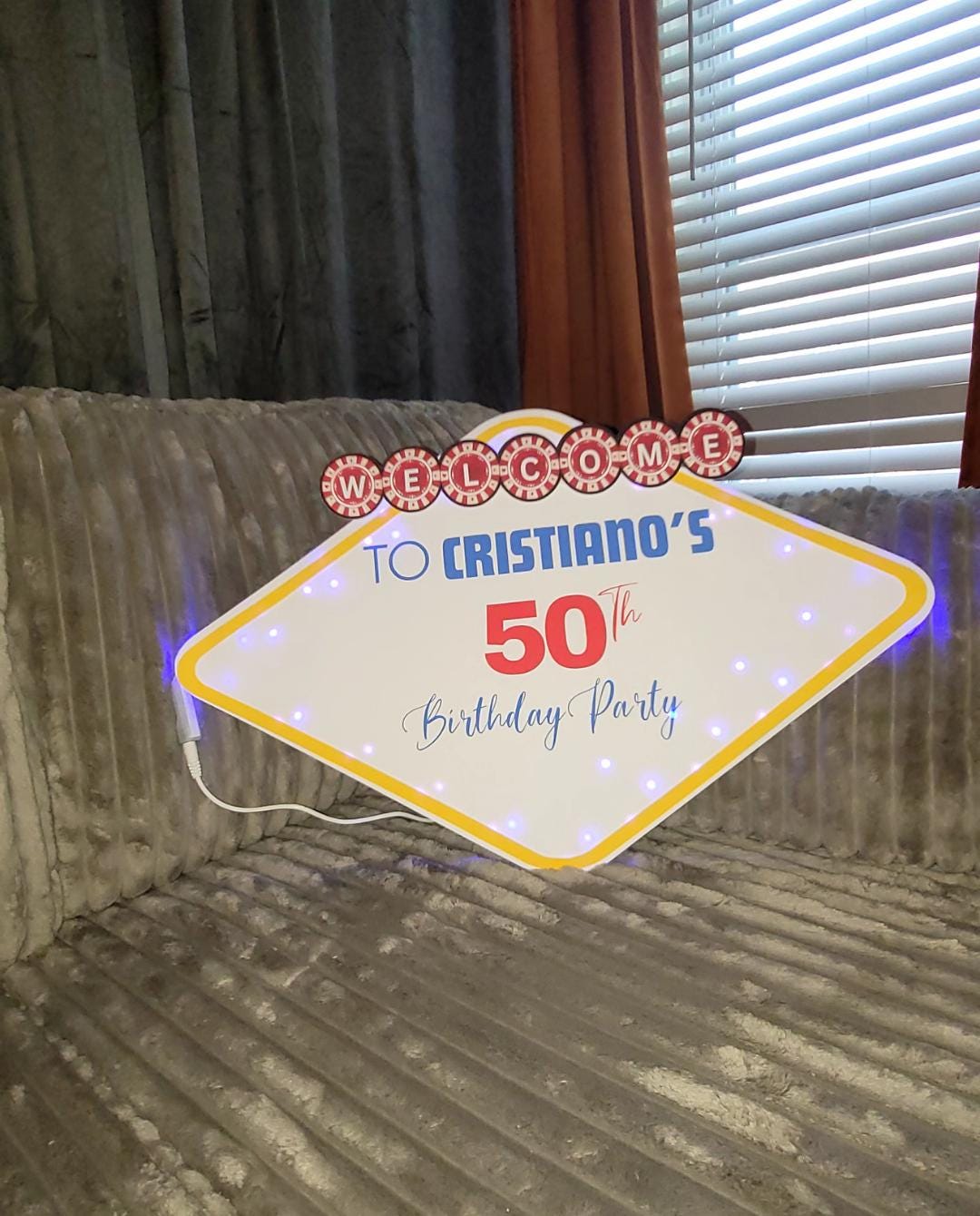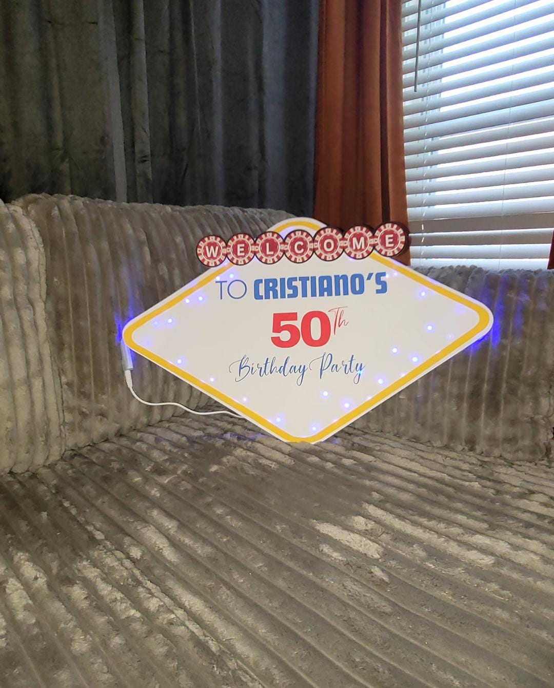 Bring bold lights and high-roller vibes to your event with this custom casino-style LED party sign! Designed with a retro neon-inspired look, this layered sign creates the perfect statement piece for your celebration backdrop.
