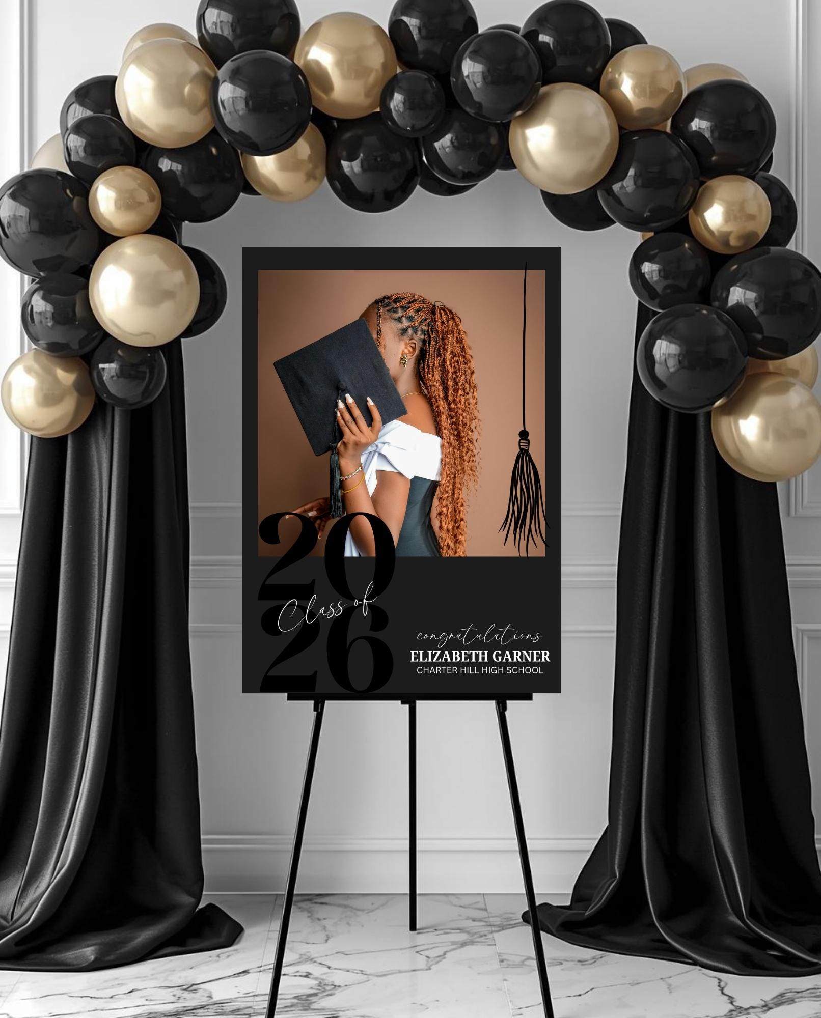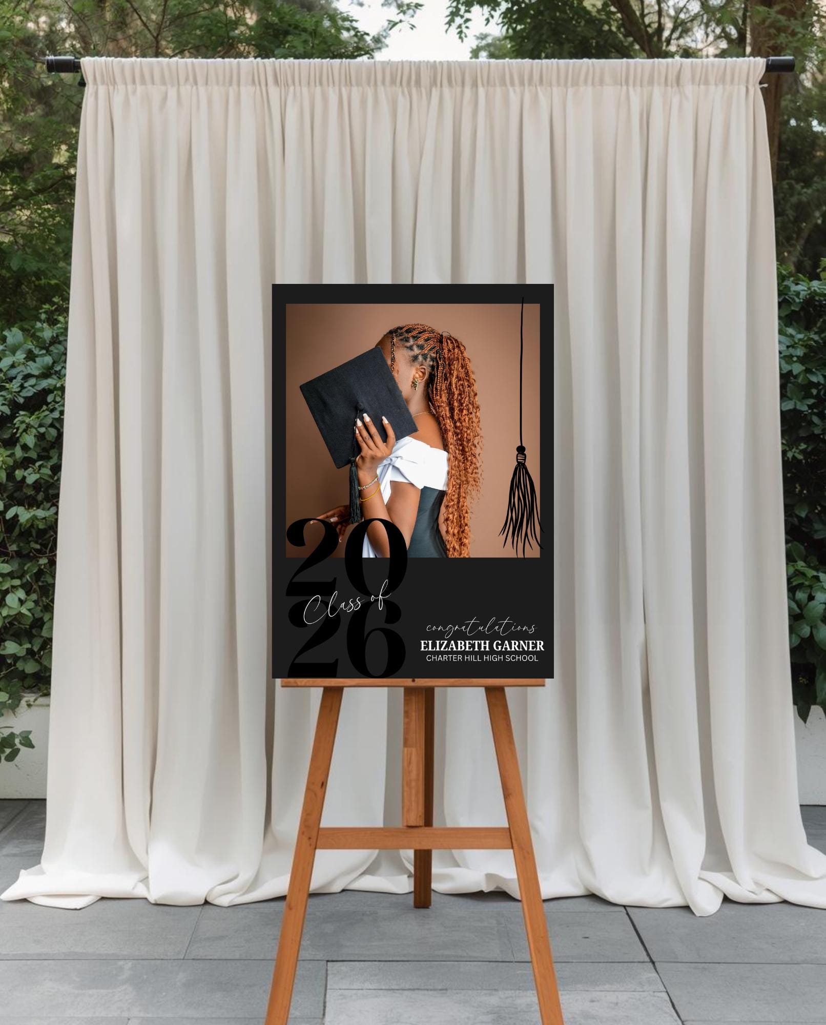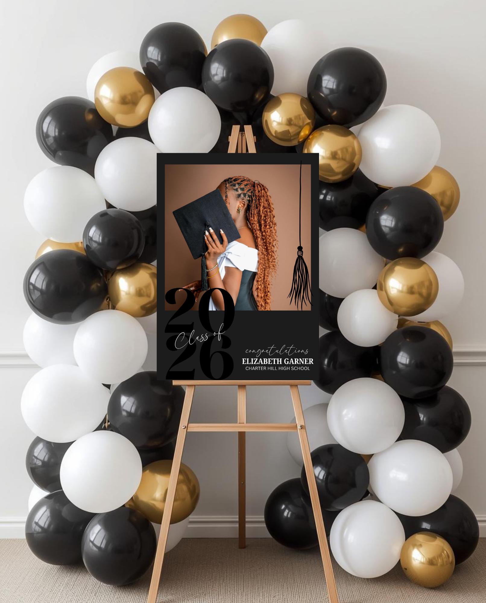 Make a stunning first impression at your graduation celebration with this sleek, black & white photo entrance sign. Designed with a modern minimalist style, this custom sign is the perfect way to welcome guests and celebrate your graduate in style.