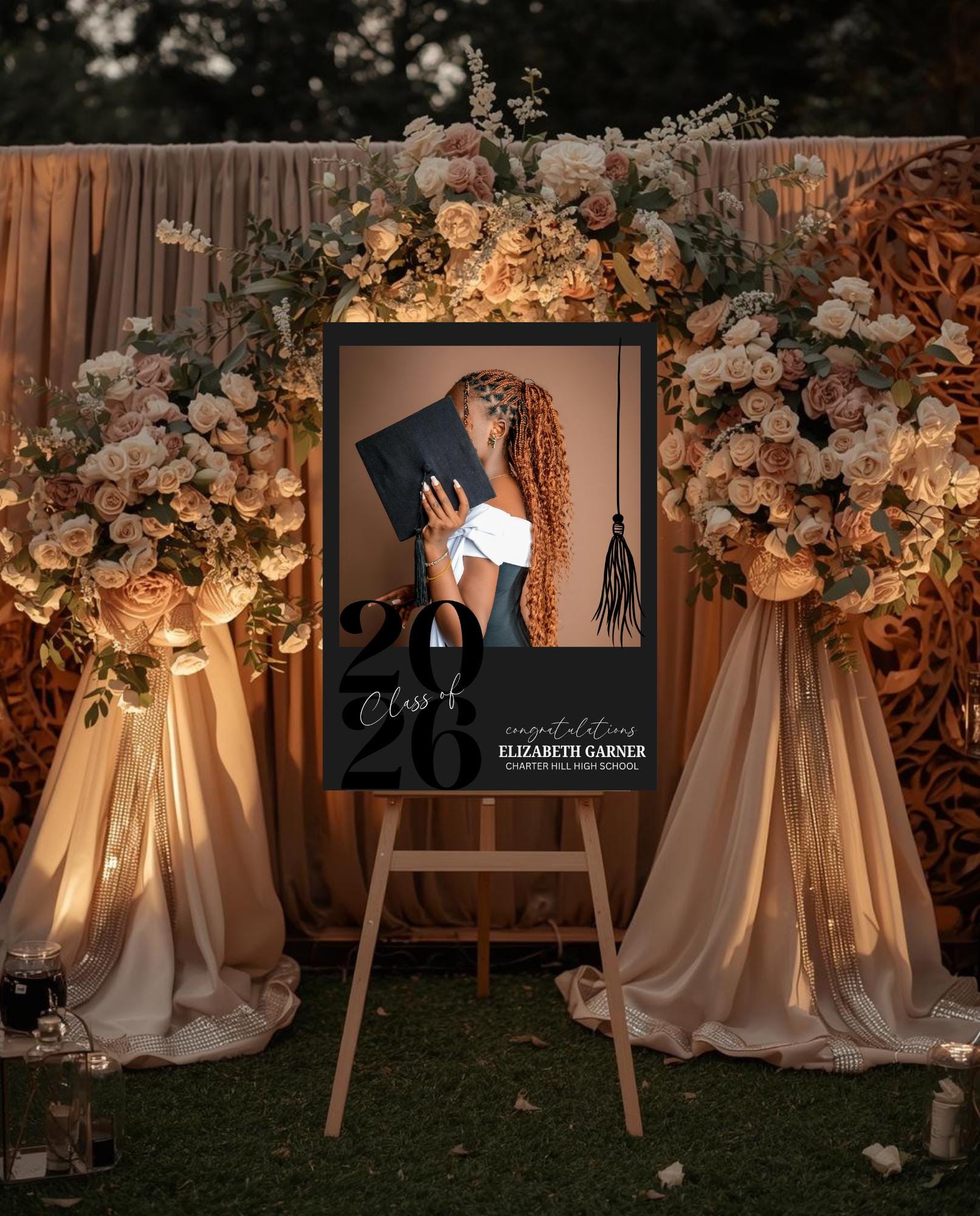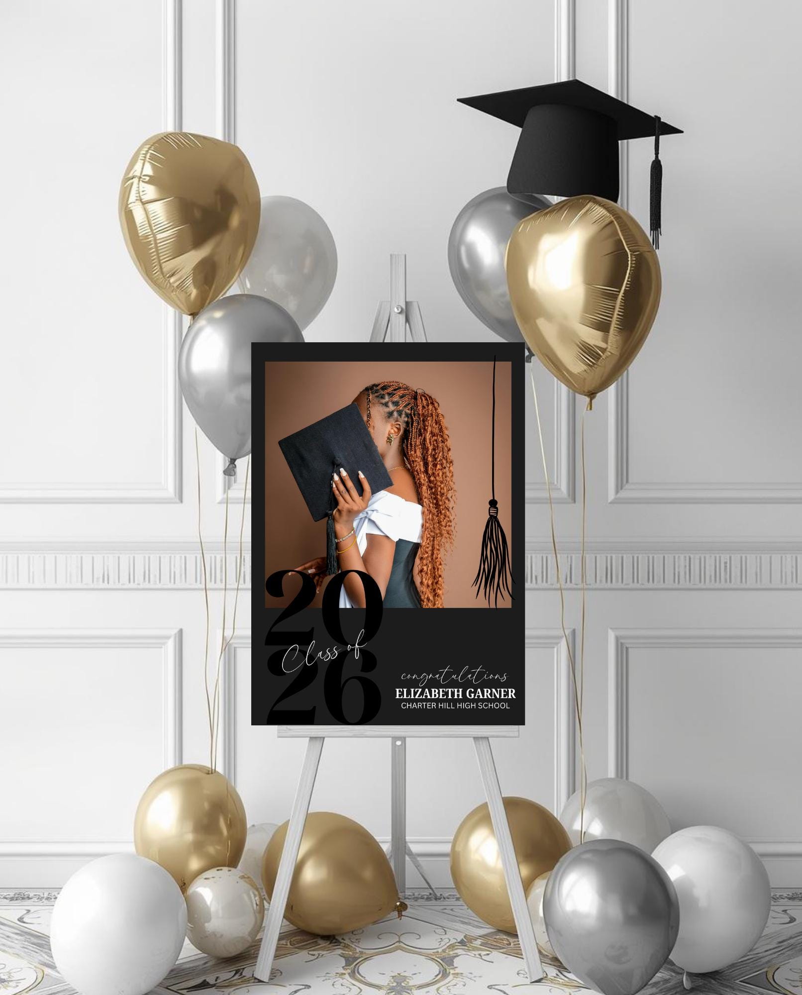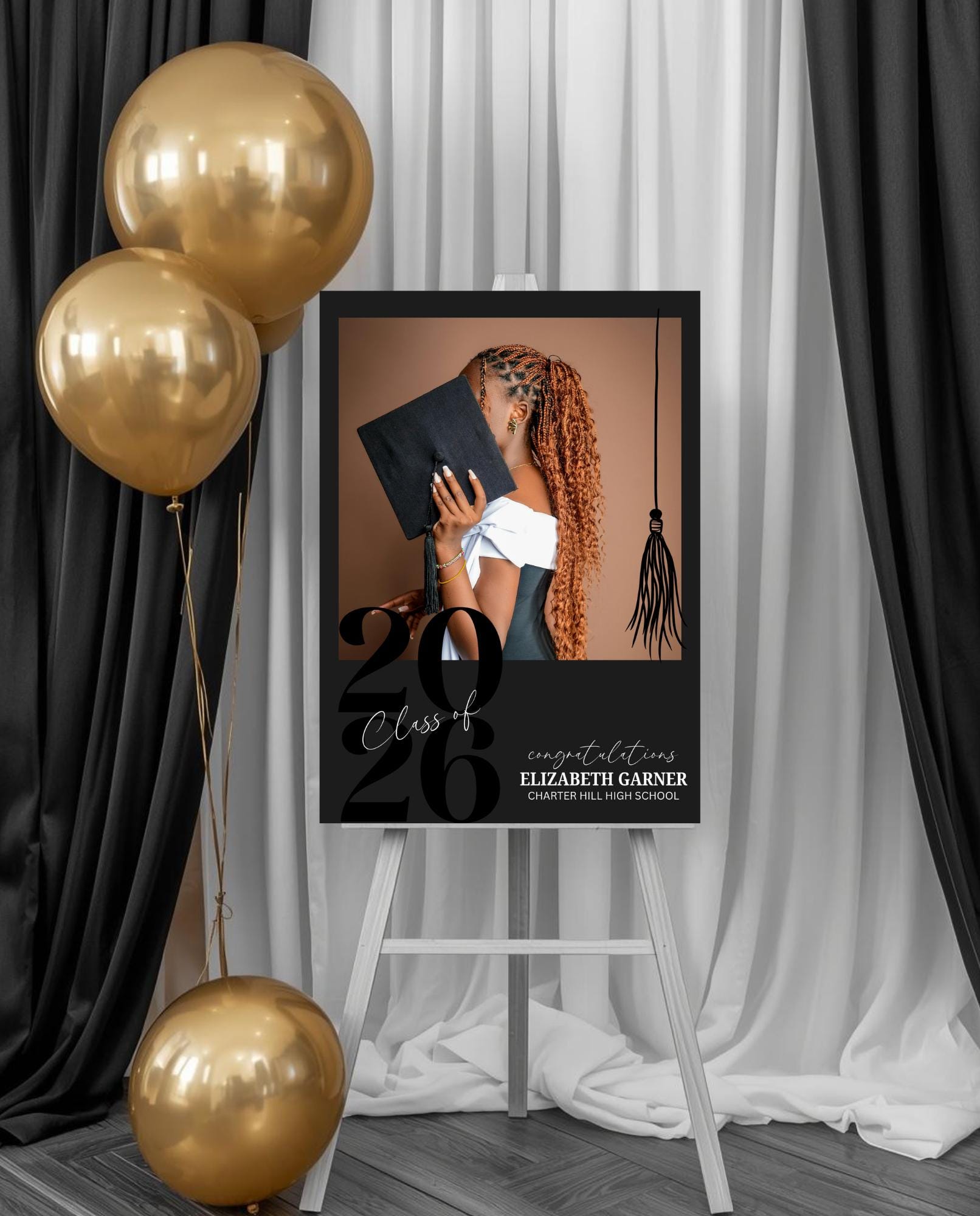 Make a stunning first impression at your graduation celebration with this sleek, black & white photo entrance sign. Designed with a modern minimalist style, this custom sign is the perfect way to welcome guests and celebrate your graduate in style.