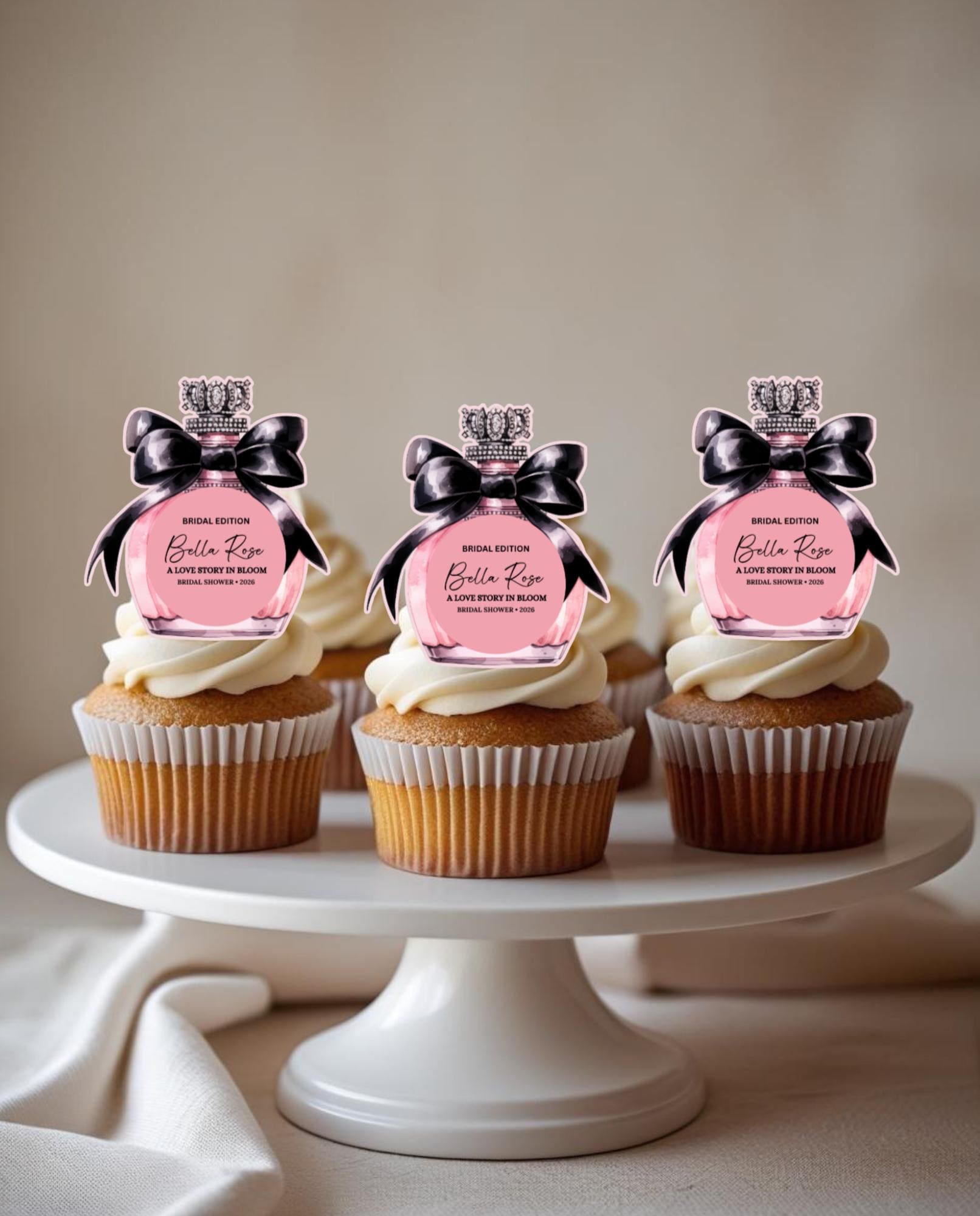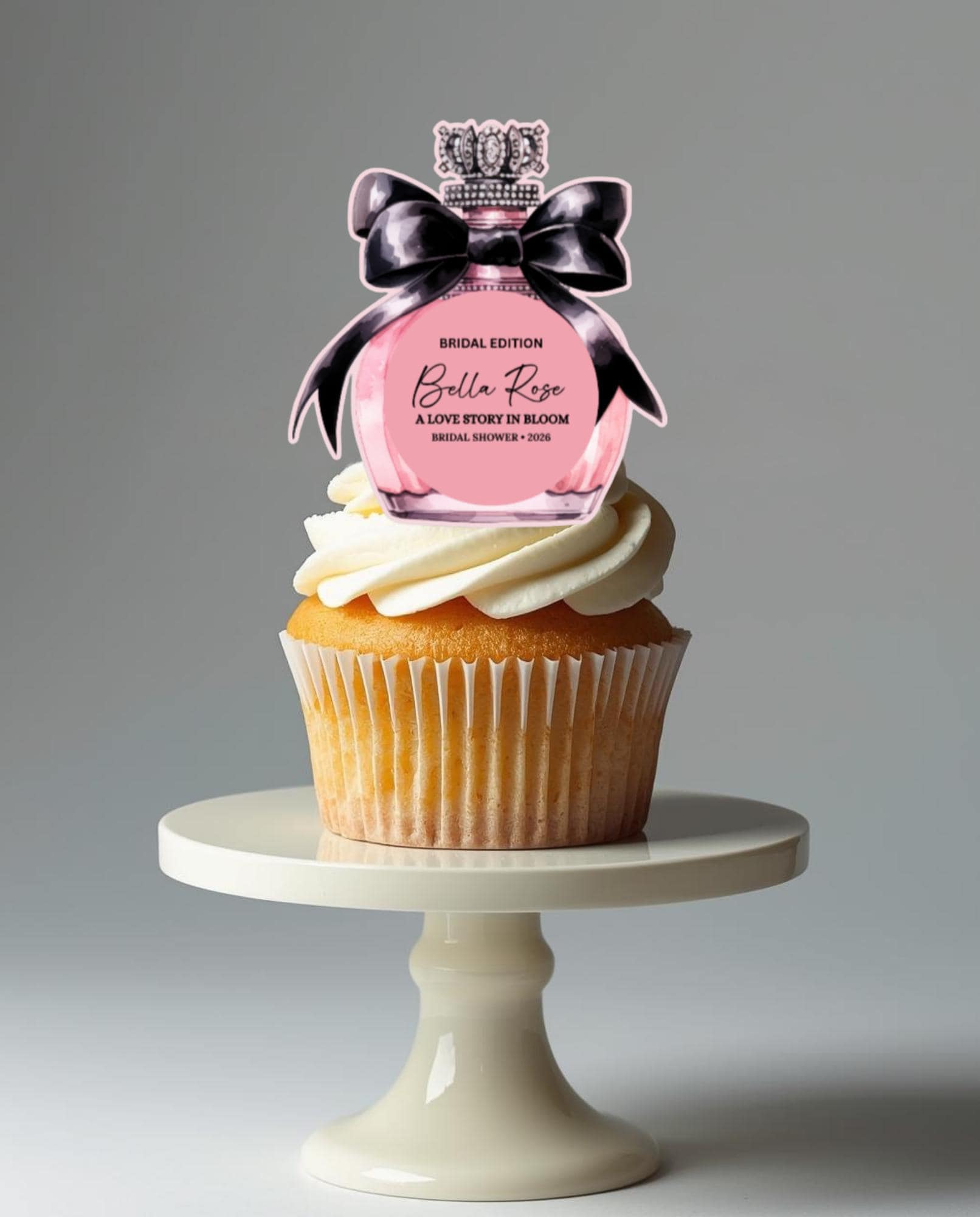 Bridal Shower Edible Cupcake Toppers Perfume Bottle, Bride to Be Cake Topper, Custom Name & Date, Bachelorette Party Decorations