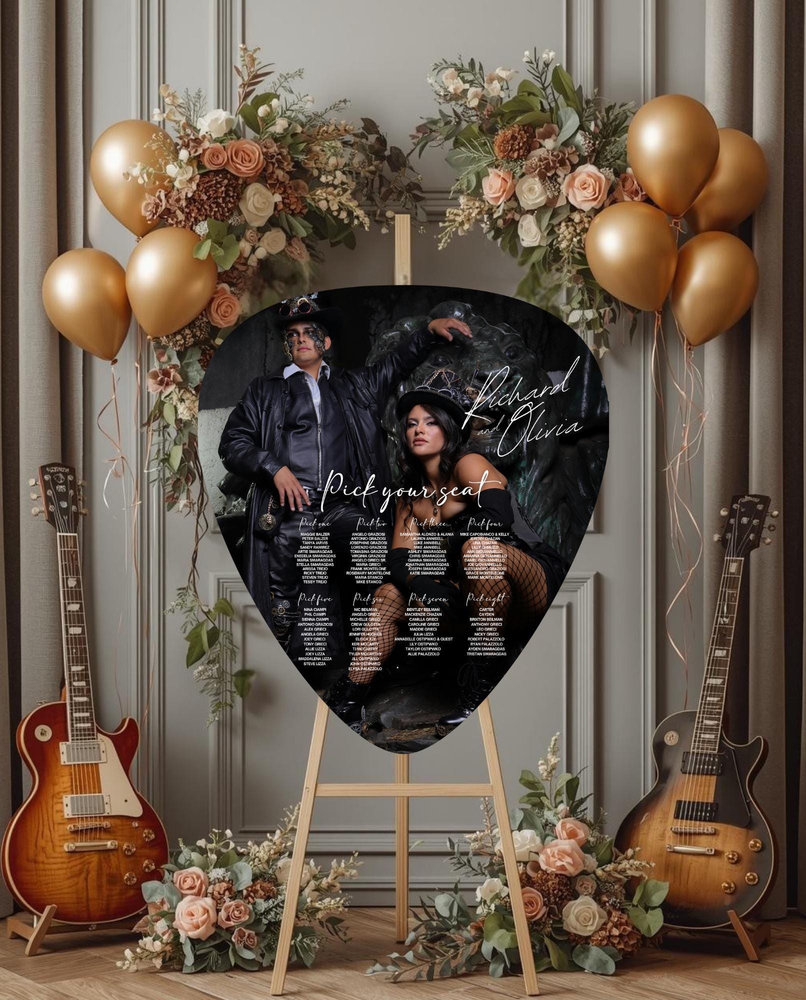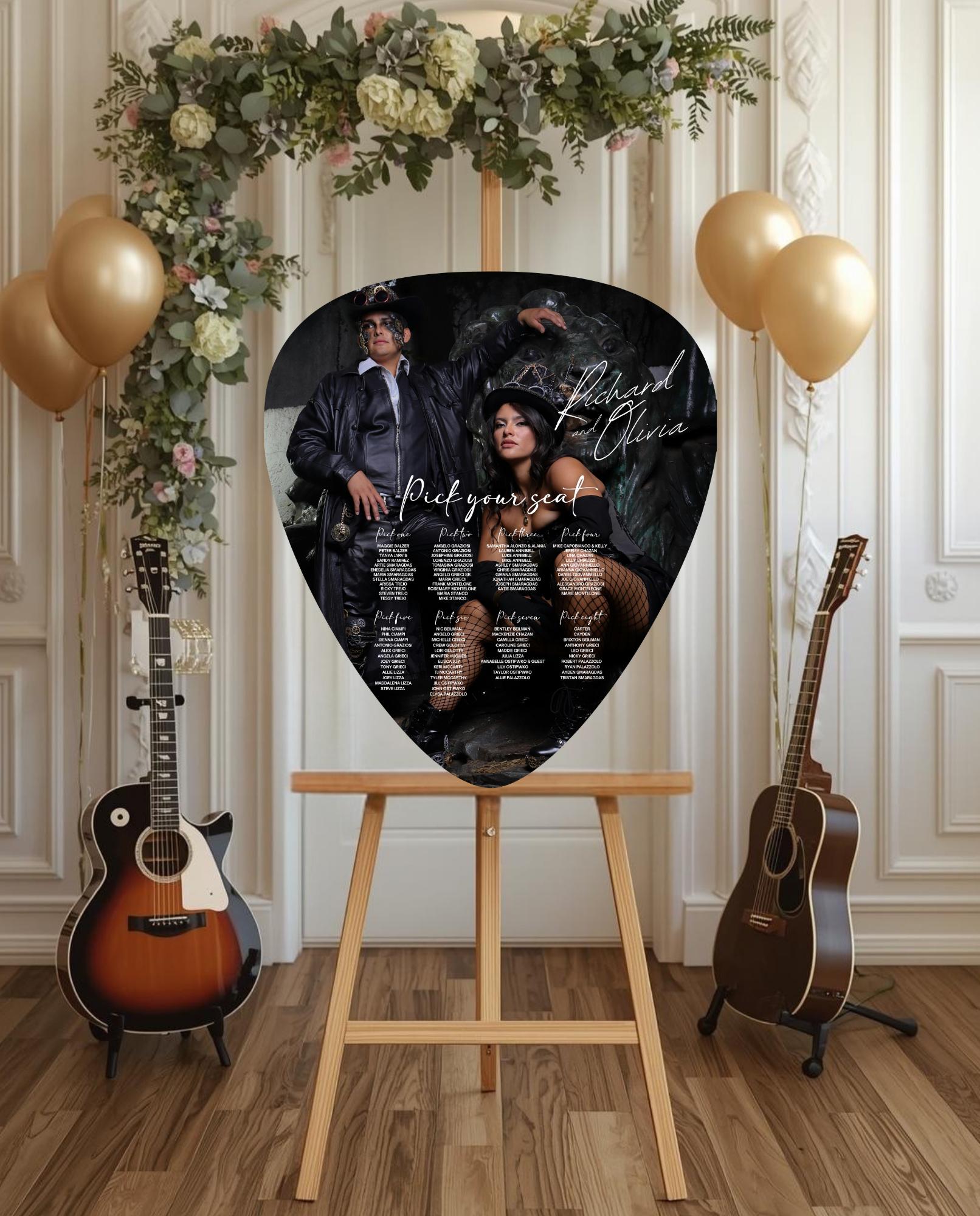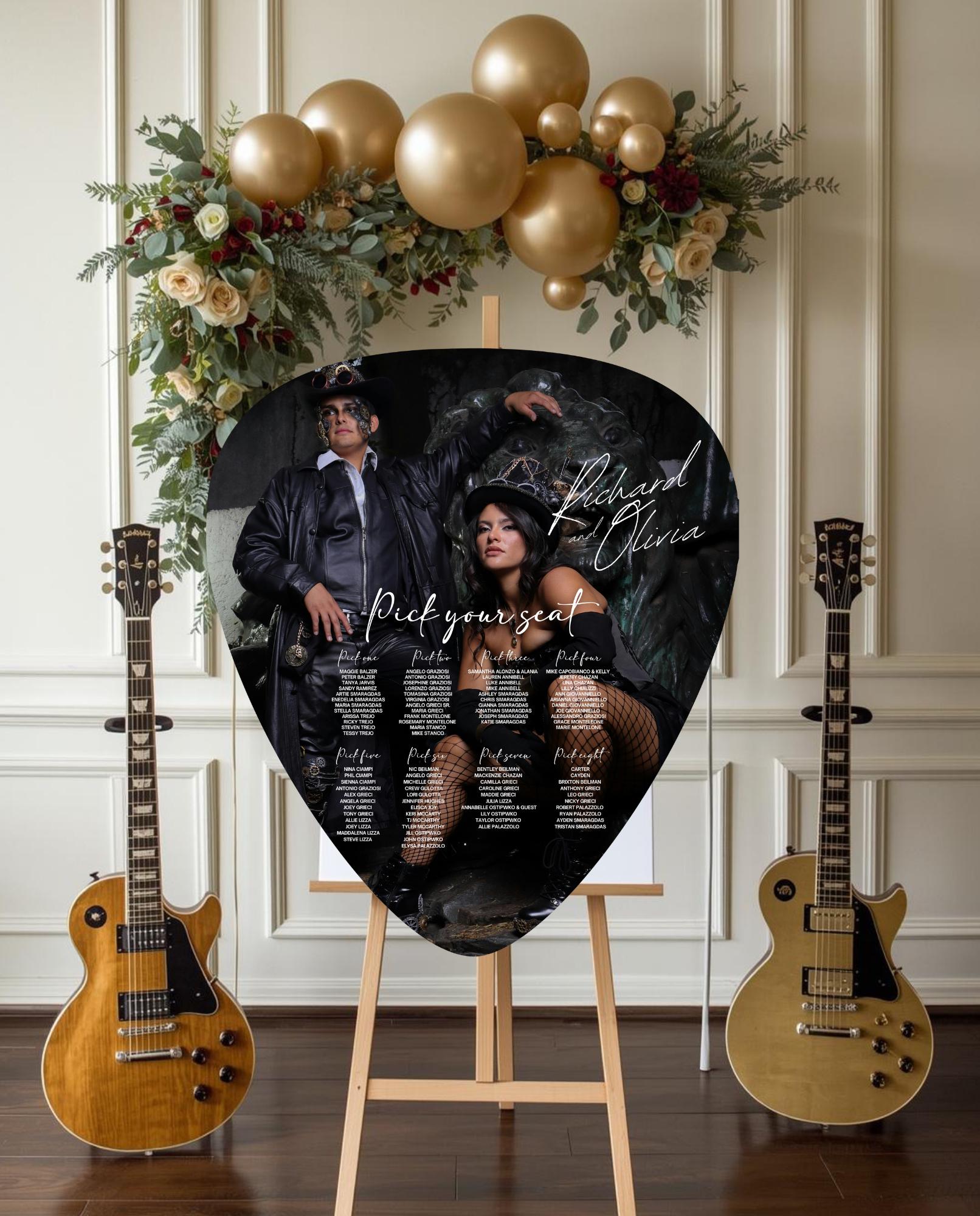 Guitar Pick Acrylic Seating Chart, Photo Wedding Seating Chart Sign, Custom Printed Seating Plan, Music Theme Reception Decor