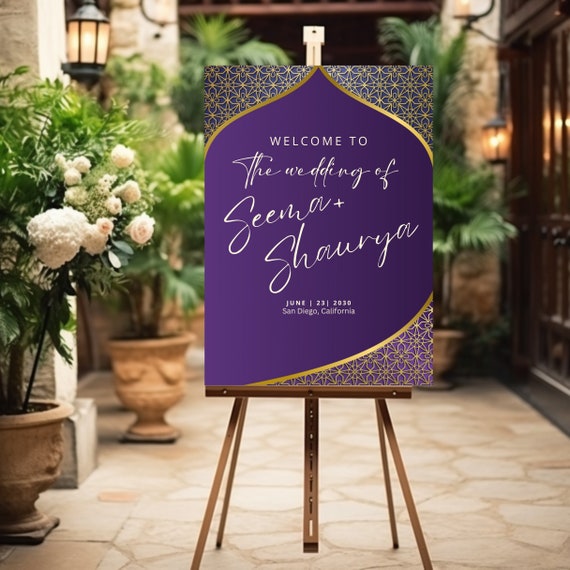 Elegant Red & Pink Wedding Arch Welcome Sign - Minimalist Wedding Entrance Sign - Modern Wedding Décor Template, Custom Wedding Welcome Sign