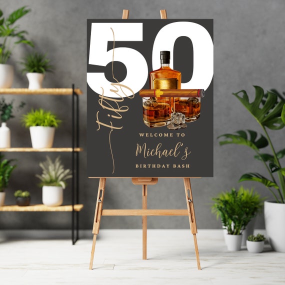 Editable Whiskey and Cigar Birthday Welcome Sign, Editable Any Age Mens Birthday Banner, Printable Gentlemen Bday Template, Instant download